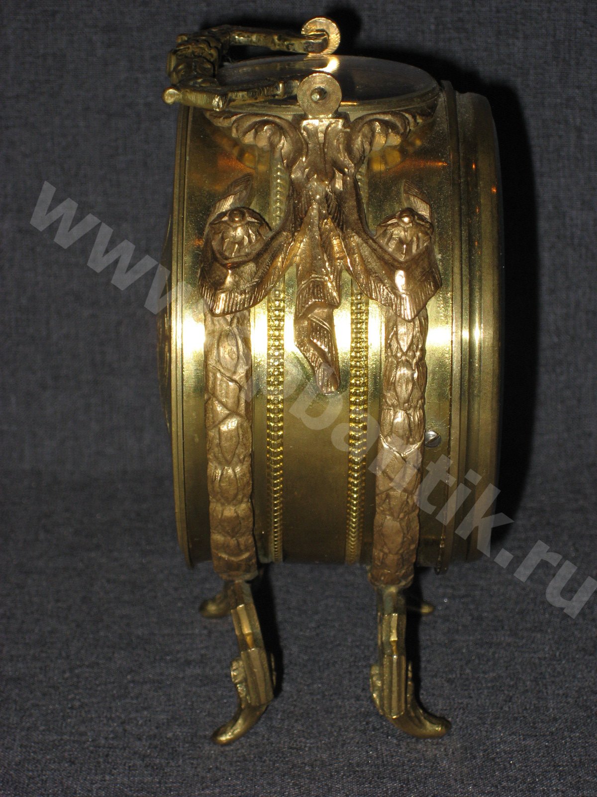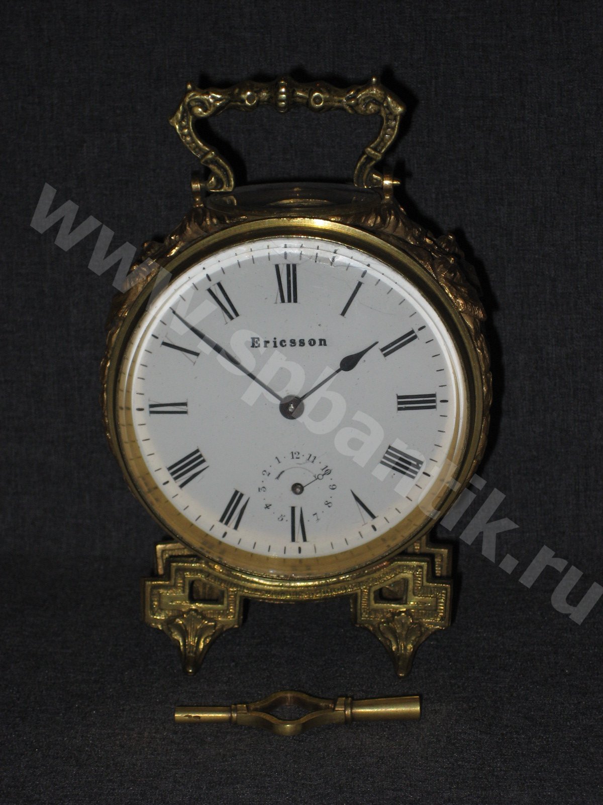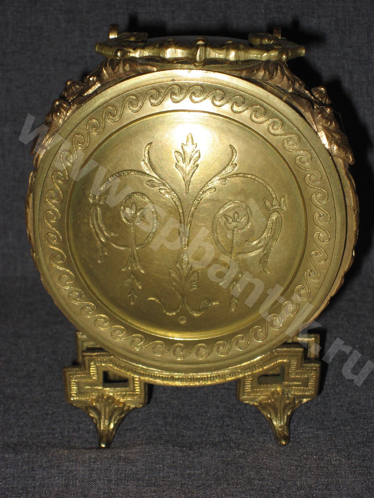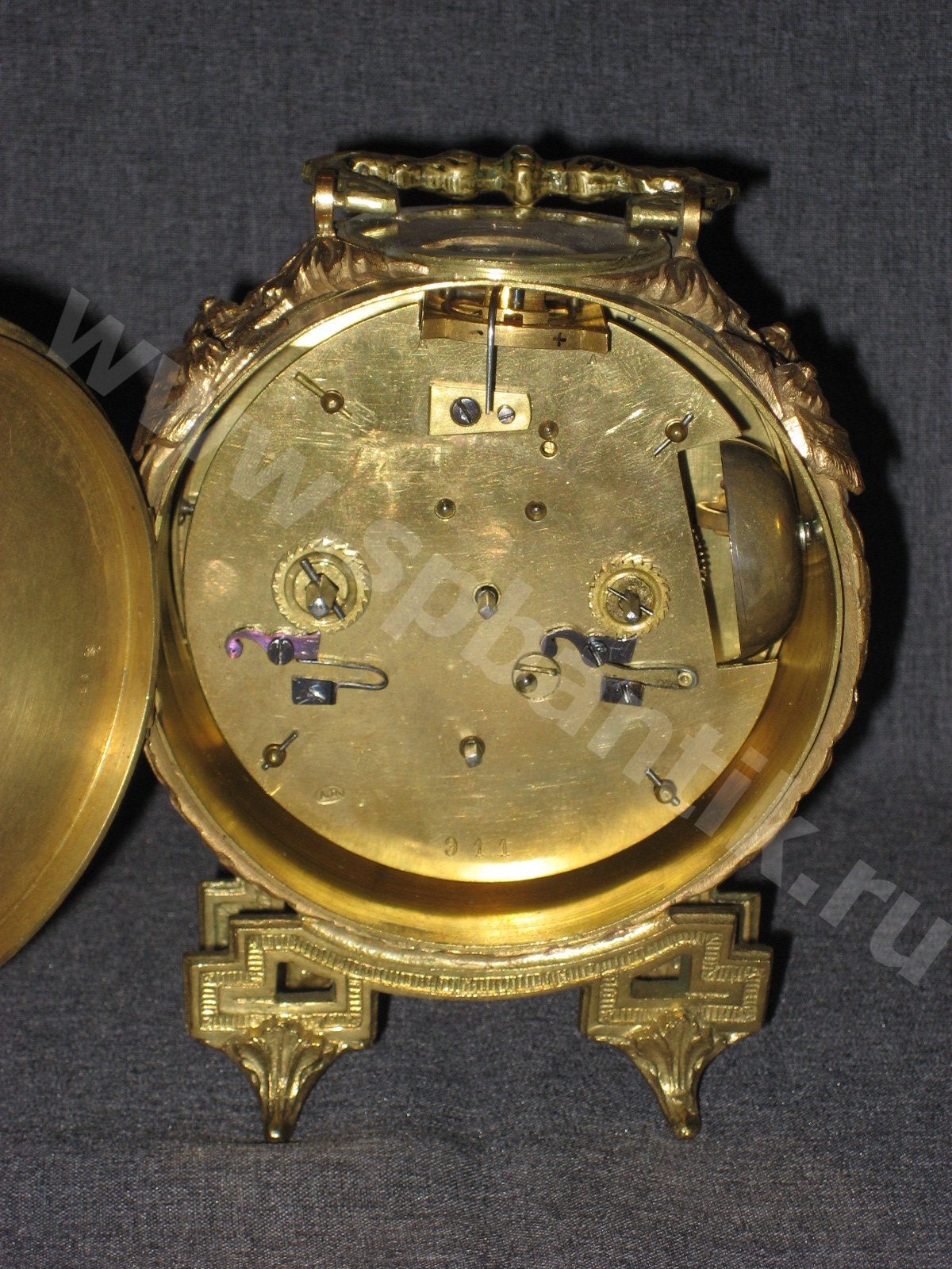 Механизм с цилиндрическим, но очень точным ходом. Механизм после чистки. Корпус очень красивый из бронзы с позолотой. Шикарное состояние. Оригинальный ключ. Завод на 2 недели. По Вашему запросу вышлем Вам дополнительные фотографии.
