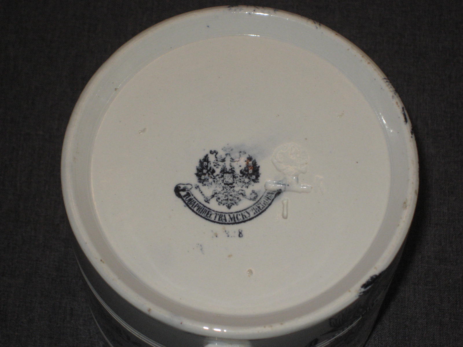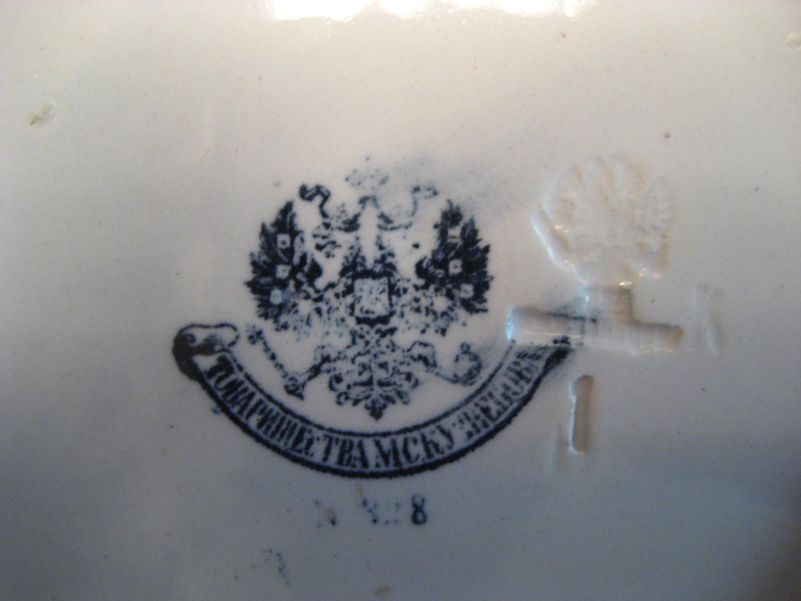 Синяя печатная марка Товарищества на фаянсе приписывается производству в Песочне Калужской губернии на бывшем заводе Мальцова.