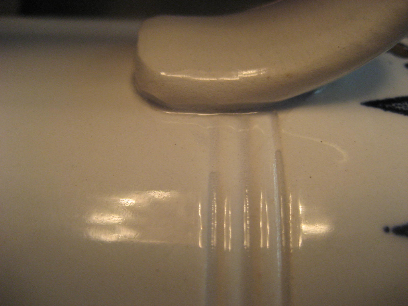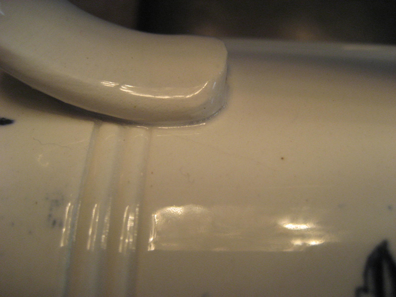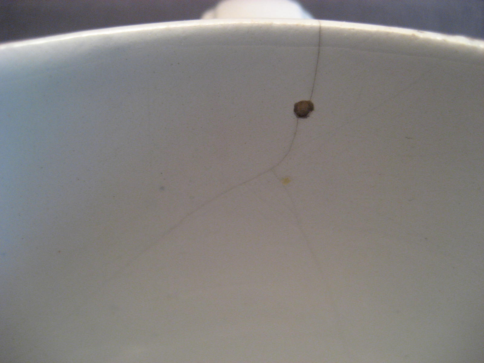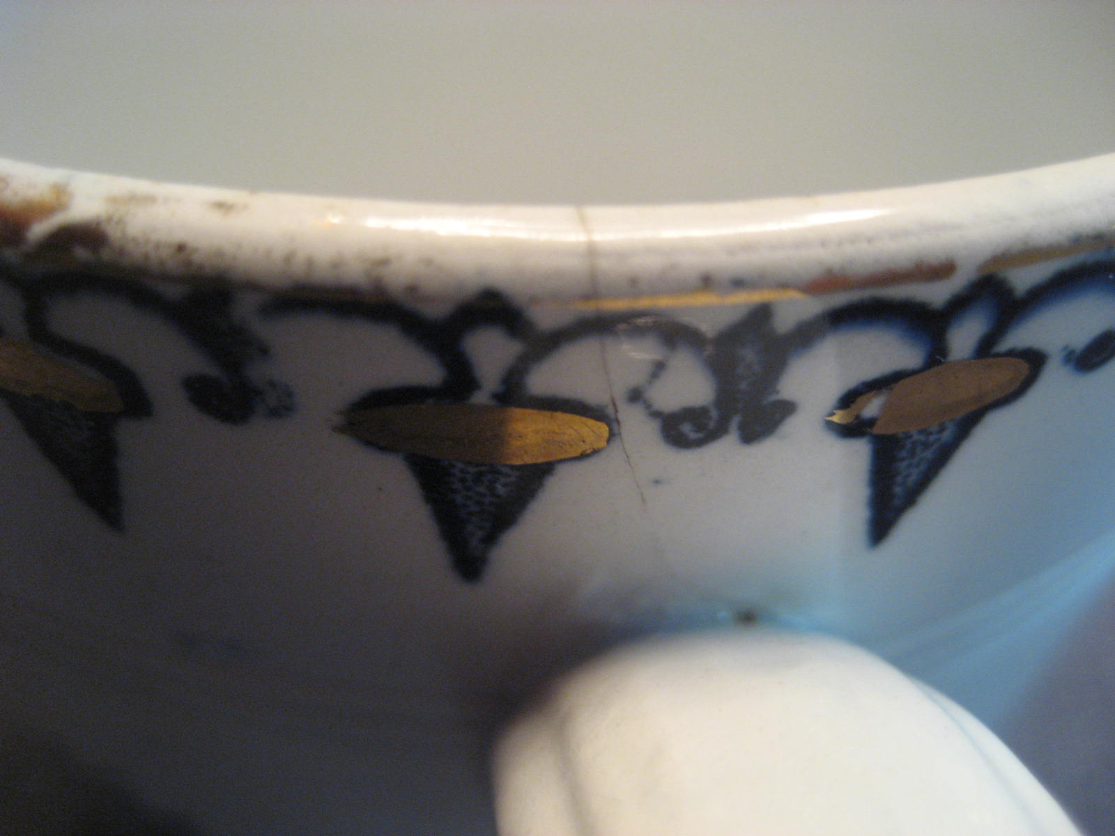 Состояние для фаянса отличное. Сколов нет. Реставраций нет. Трещина в районе ручки (смотрите фото), больше похожая на паук.