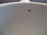 ВНИМАНИЕ! Специалист подсказал, что это ТЕХНОЛОГИЧЕСКИЙ БРАК! В процессе производства в массе образовался пузырь, который потом лопнул и от него пошли микротрещины. С наружной стороны трещину почти не видно. Бокал и воду не пропускает, и звук издаёт абсолютно целого предмета.