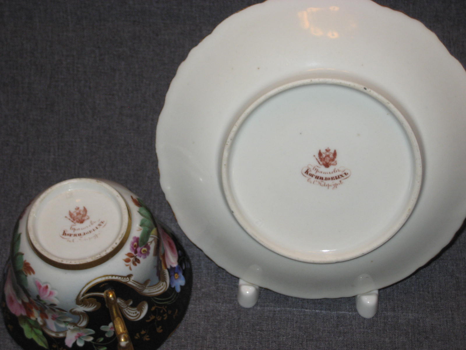 Возраст: 1843-1861 годы. Страна: Российская Империя. Санкт-Петербург. Состояние: Отличное Техника: Надглазурная роспись Позолота Роспись золотом Роспись красками Торговые марки: Фарфоровый завод Братьев Корниловых [ Российская империя ][Посмотреть все предметы этого завода]