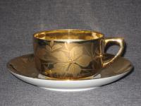 Чашкa c блюдцем, произведённые на Дмитровской фабрике товарищества М.С.Кузнецова..