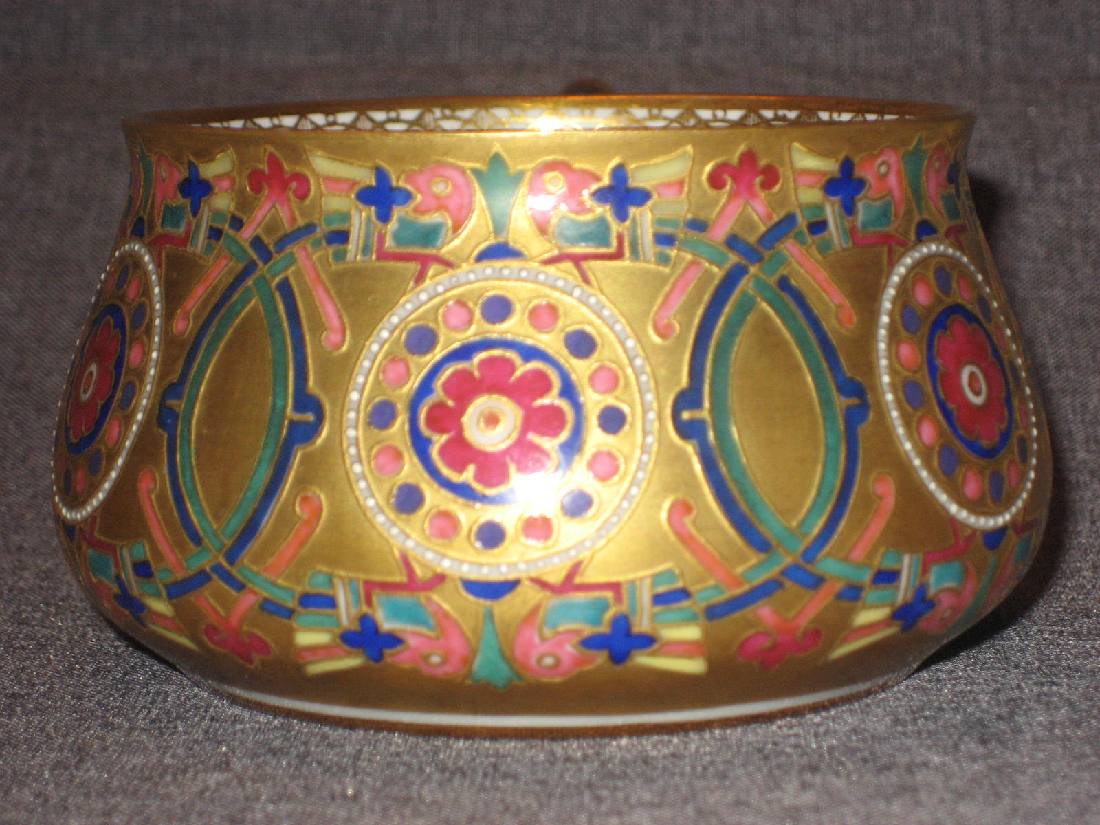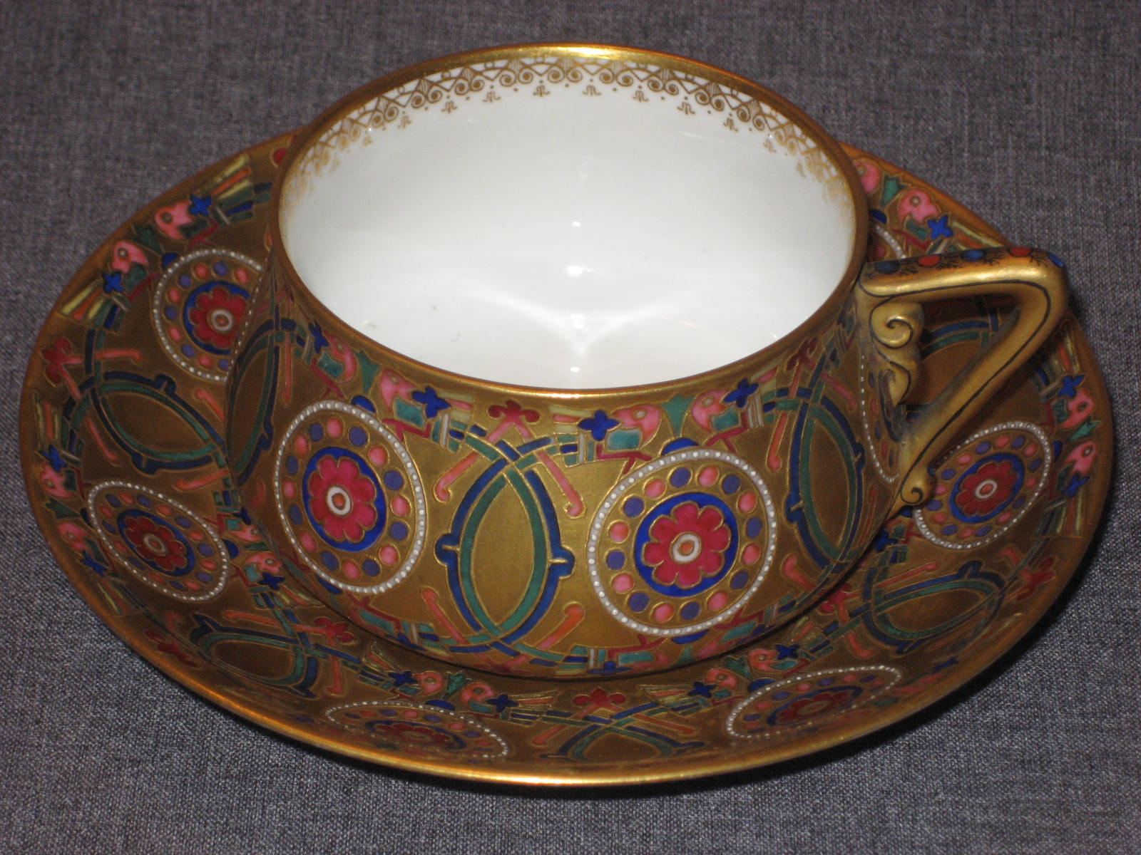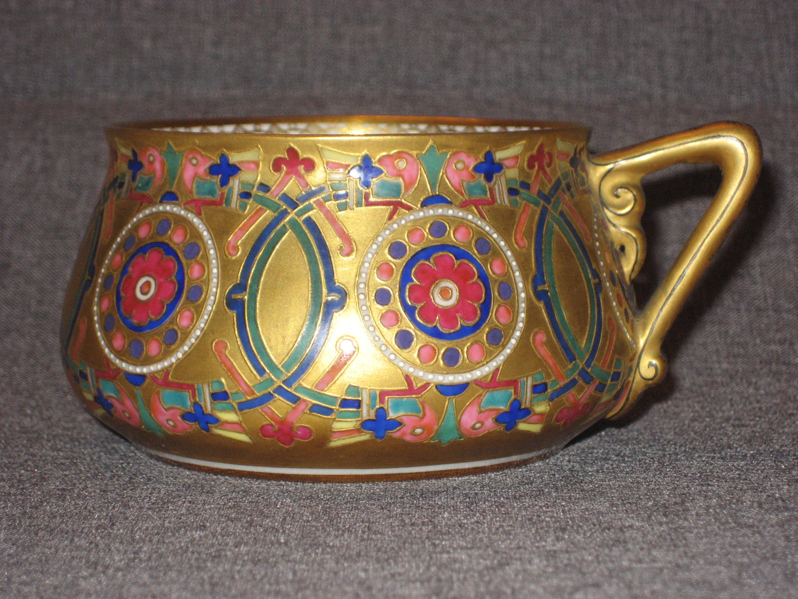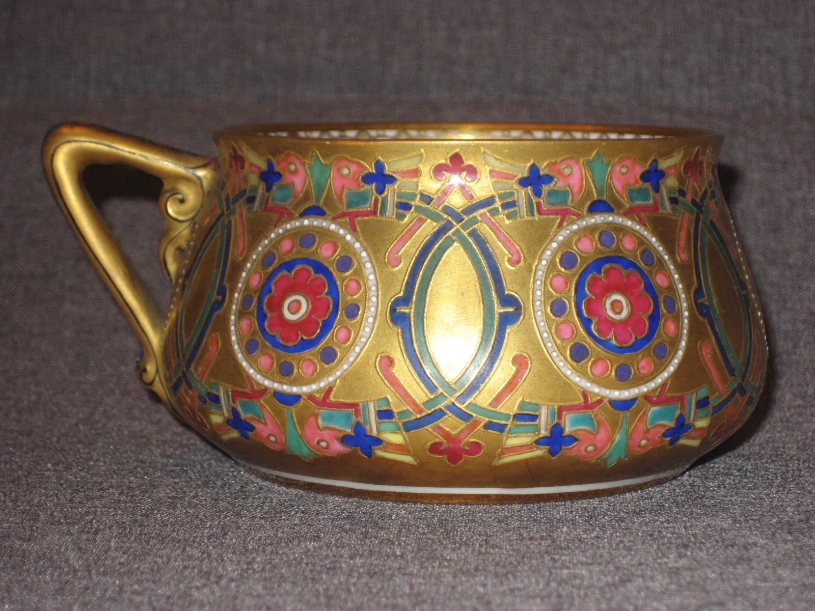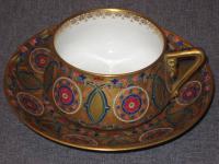 Возраст: 1892 - 1917 Годы. Страна: Российская Империя. Состояние: Отличное Техника: Эмаль перегородчатая Роспись эмалью Позолота Надглазурная роспись Материалы: Фарфор Торговые марки: Фарфоровые заводы Кузнецовых [ Российская империя ]