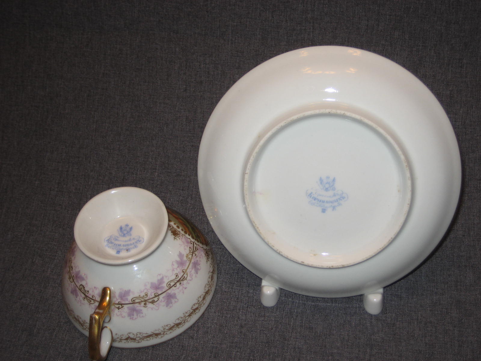 Потёртостей почти нет. Живопись в прекрасном состоянии. Трещина на чашке. Смотрите фото. Блюдце в идеальном состоянии. По Вашему запросу вышлю Вам все необходимые фотографии.