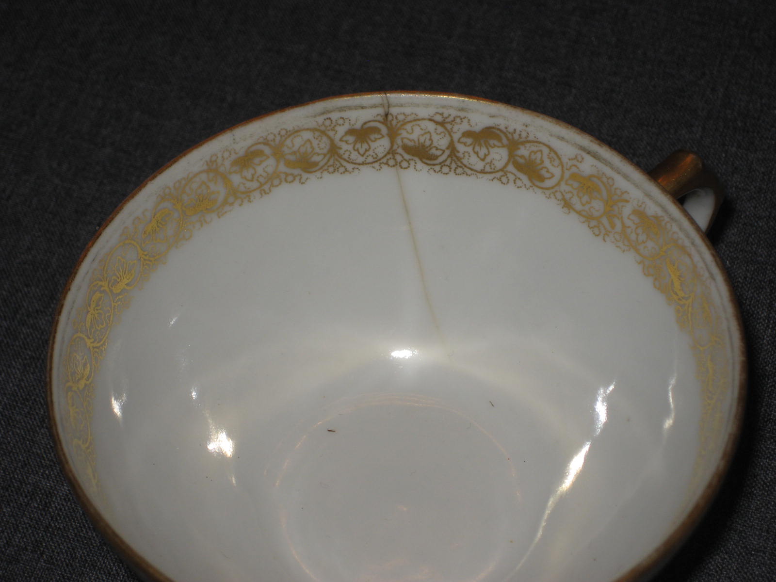 Потёртостей почти нет. Живопись в прекрасном состоянии. Трещина на чашке. Смотрите фото. Блюдце в идеальном состоянии. По Вашему запросу вышлю Вам все необходимые фотографии.