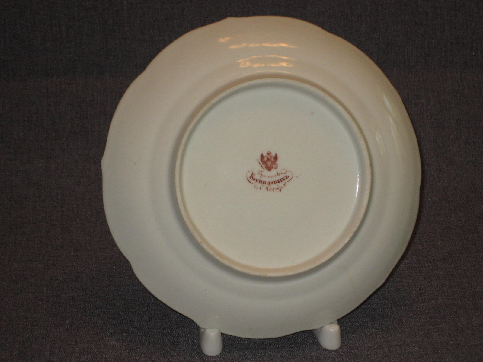 Возраст: 1843 - 1861 Годы. Страна: Российская Империя. Санкт-Петербург. Состояние: Хорошее Техника: Надглазурная роспись Позолота Роспись золотом Материалы: Фарфор Торговые марки: Фарфоровый завод Братьев Корниловых [ Российская империя ]