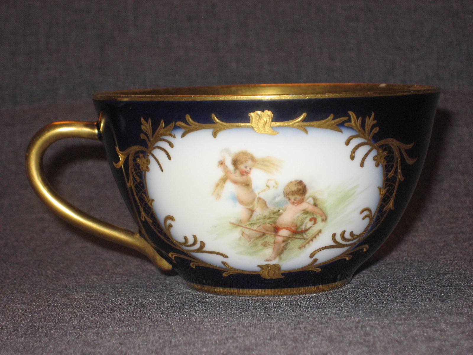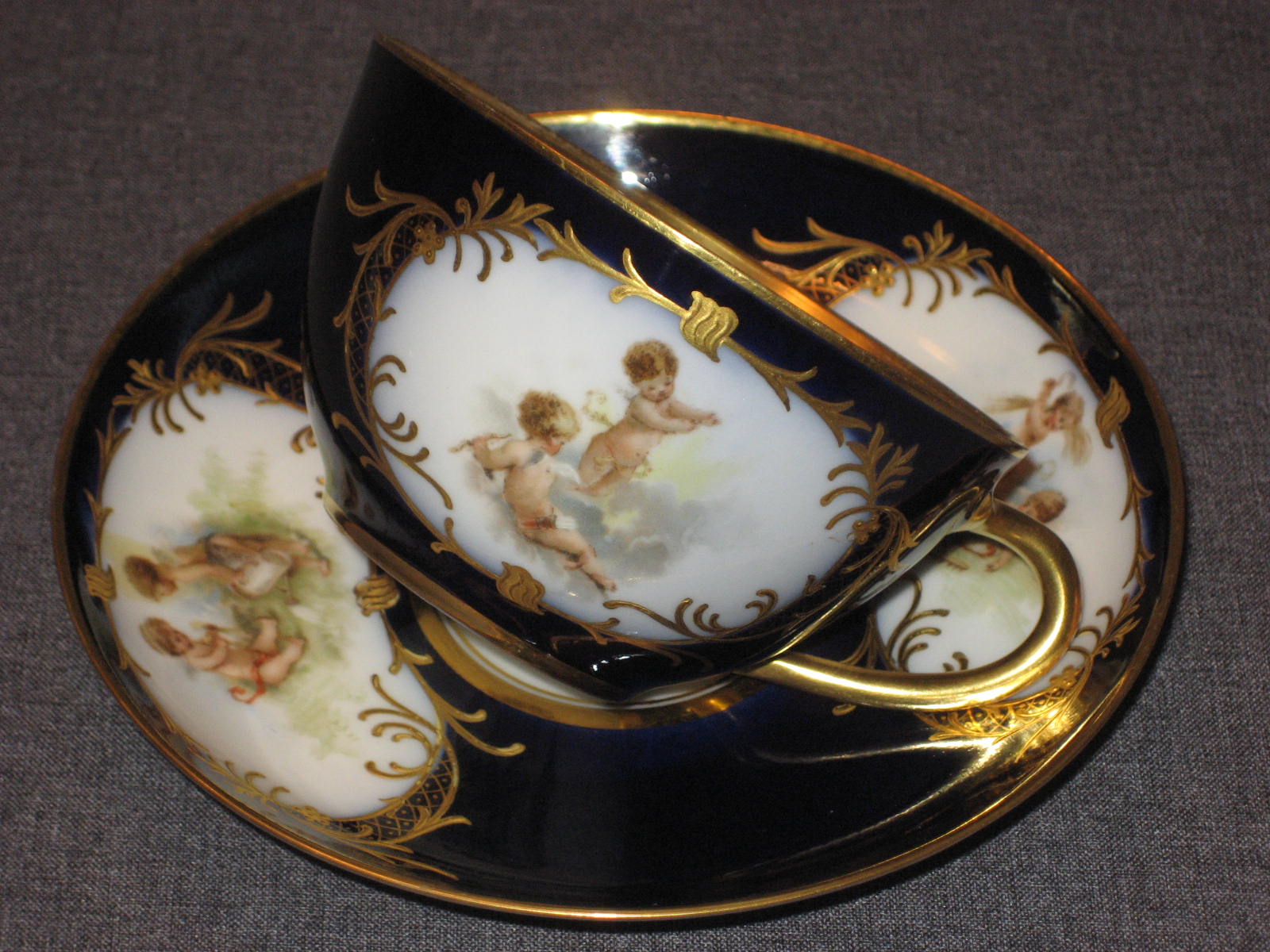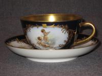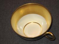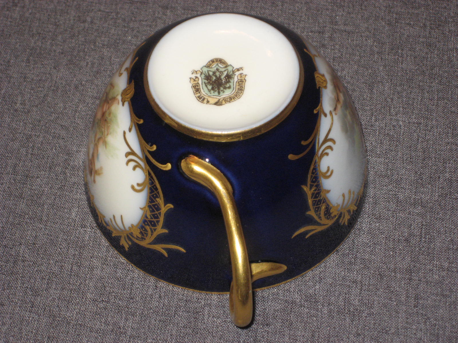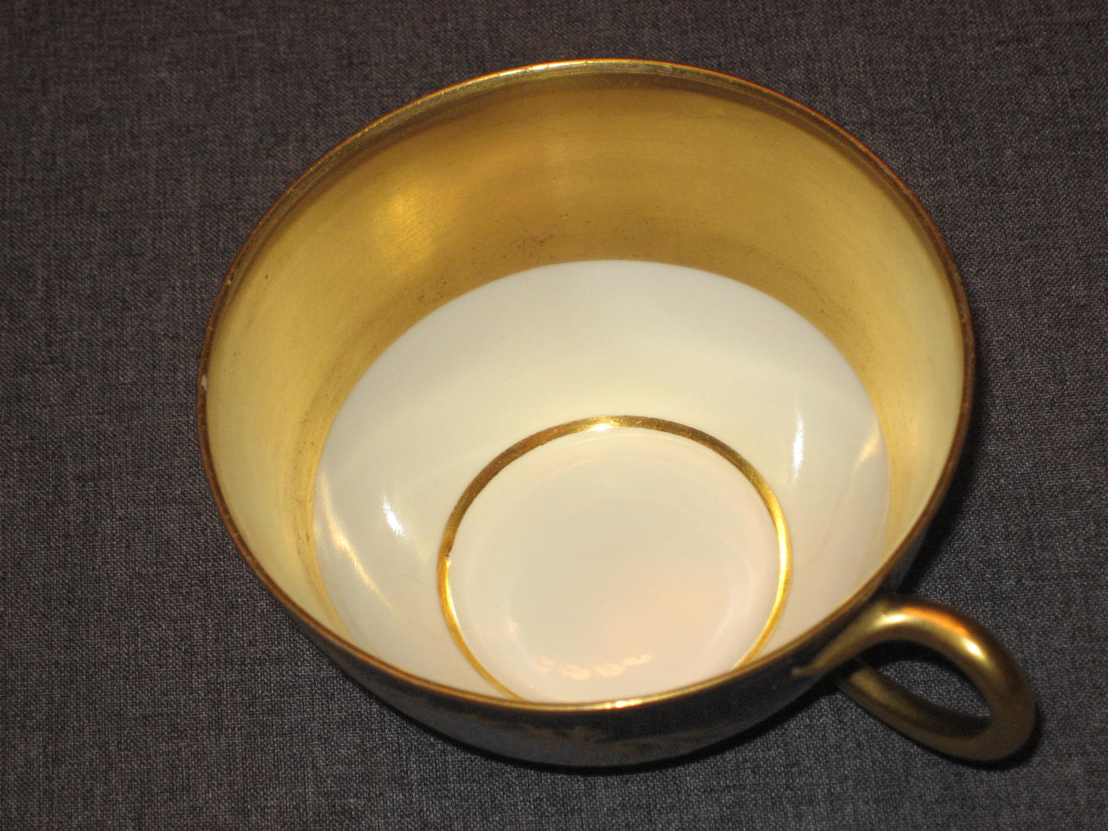 И чашка, и блюдце находятся в идеальнейшем состоянии. Нет ни сколов, ни трещин, ни реставраций. Даже потёртости позолоты нет нигде. Роспись золотом рельефная/объёмная.