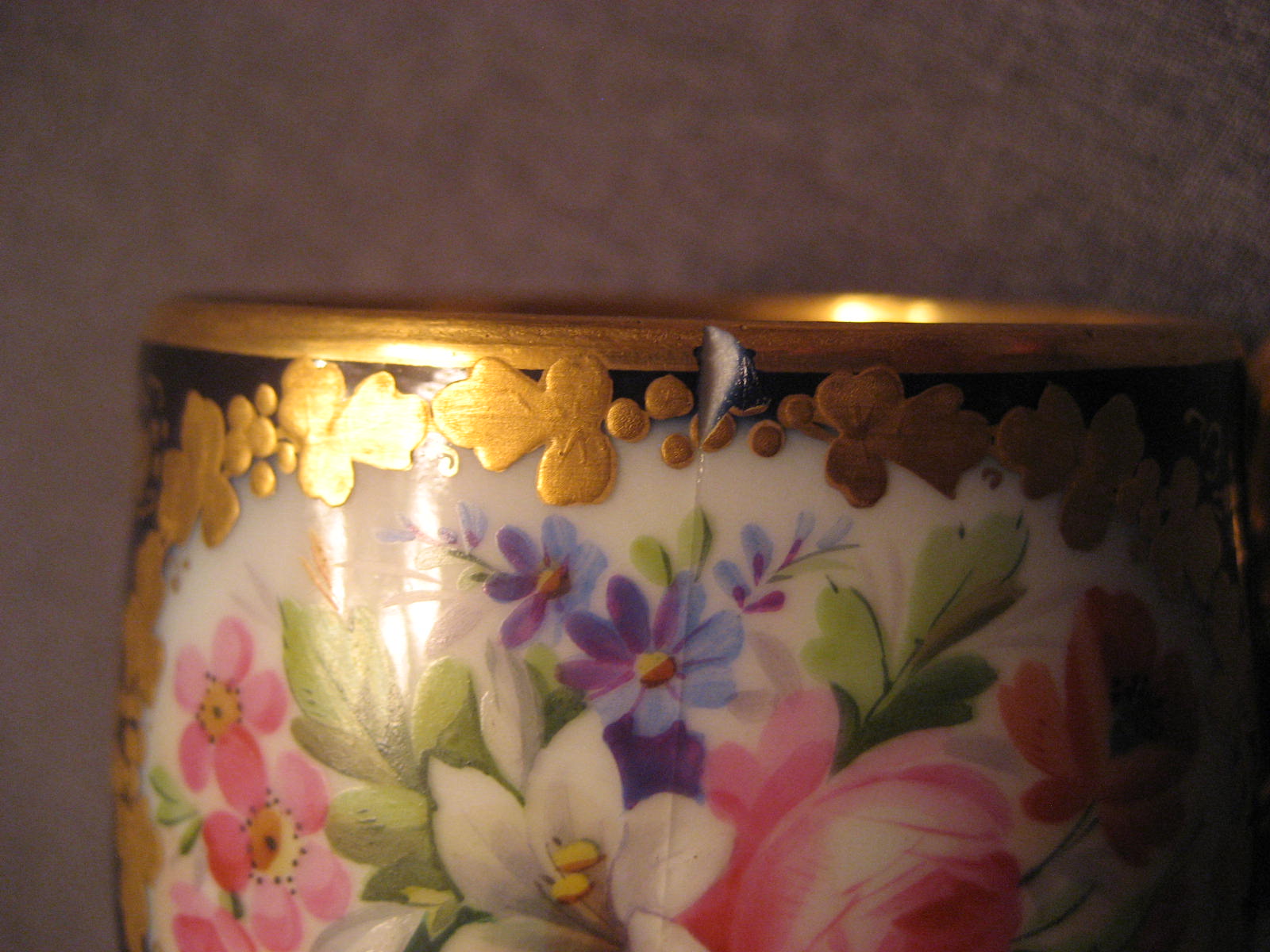 Но есть дефекты: На блюдце реставрация. Приклеены два сегмента. На чашке скол и от него идёт трещина. Смотрите шесть последних фотографий.