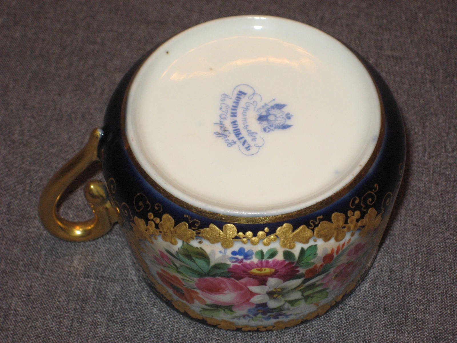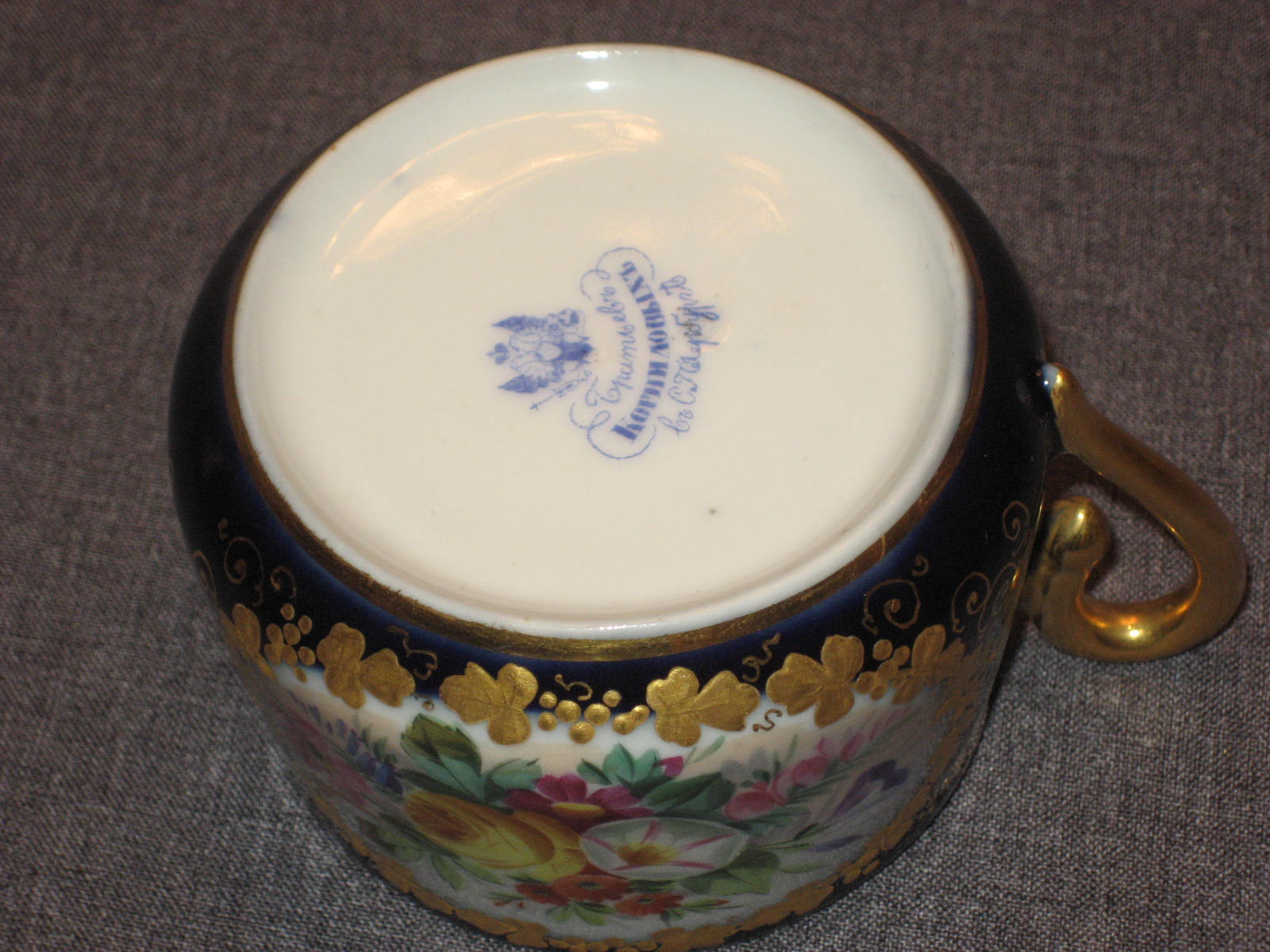 Возраст: 1861 - 1884 Годы. Страна: Российская Империя. Санкт-Петербург. Состояние: Отличное Техника: Надглазурная роспись Подглазурное покрытье кобальтом Позолота Роспись золотом Материалы: Фарфор Торговые марки: Фарфоровый завод Братьев Корниловых [ Российская империя ][Посмотреть все предметы этого завода]