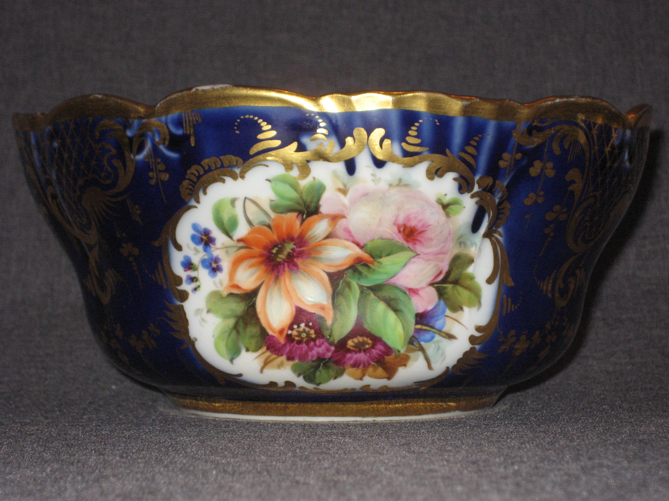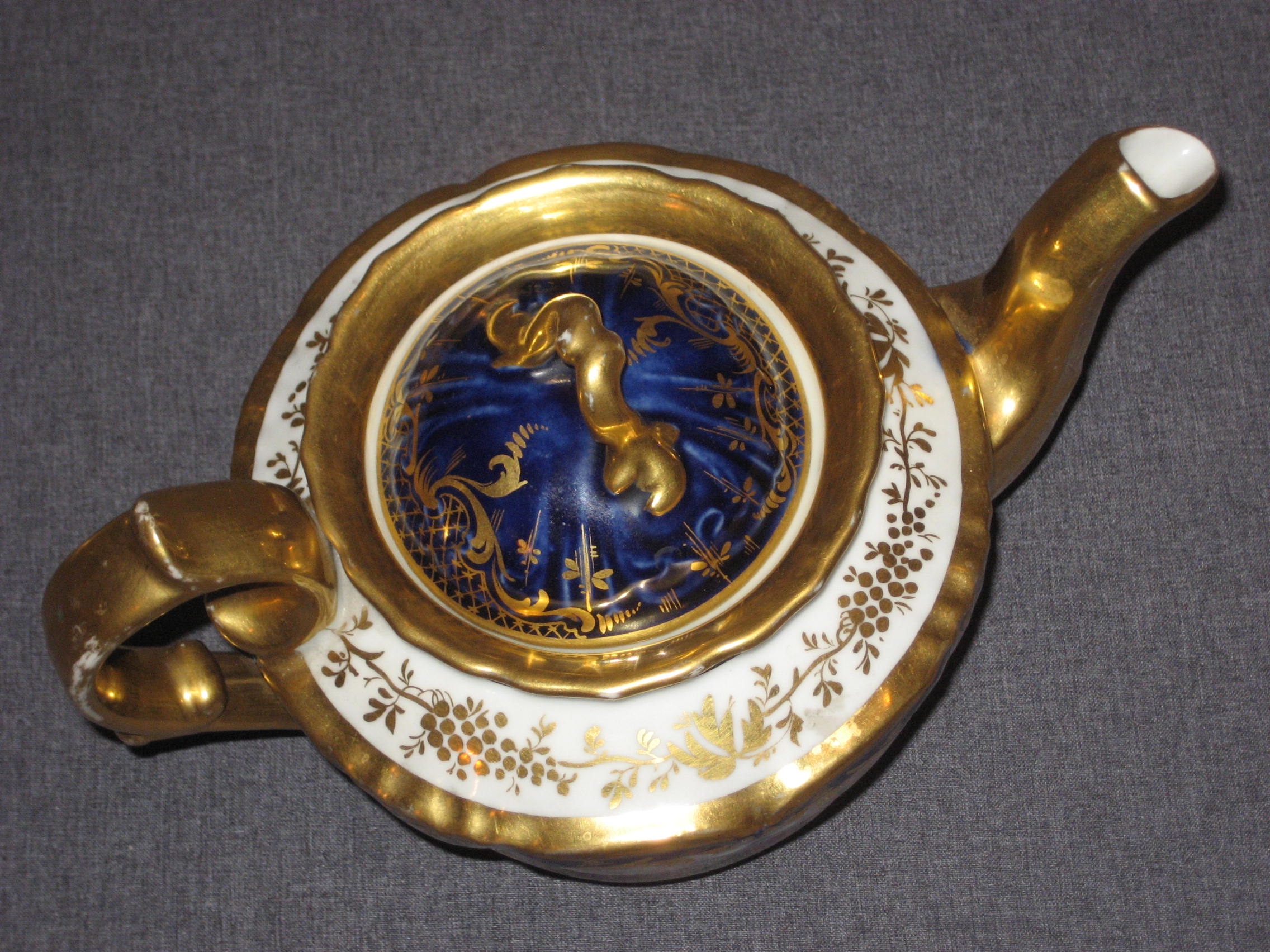 Возраст: 1843-1861 Годы. Страна: Российская Империя. Санкт-Петербург. Состояние: Отличное Техника: Позолота Подглазурное покрытье кобальтом Надглазурная роспись Роспись золотом Материалы: Фарфор Торговые марки: Фарфоровый завод Братьев Корниловых [ Российская империя ][Посмотреть все предметы этого завода]