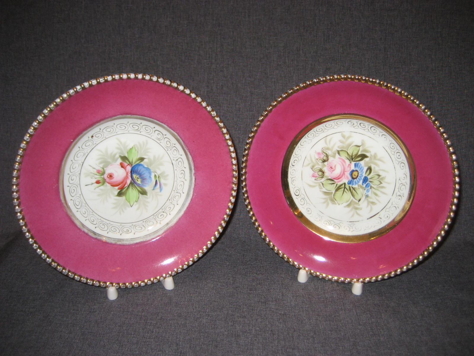 Две тарелки с жемчужным бортом. Отличное состояние. Дефектов нет никаких. Только потёртости позолоты и крытья на одной тарелке. Вторая тарелка в идеальном состоянии.