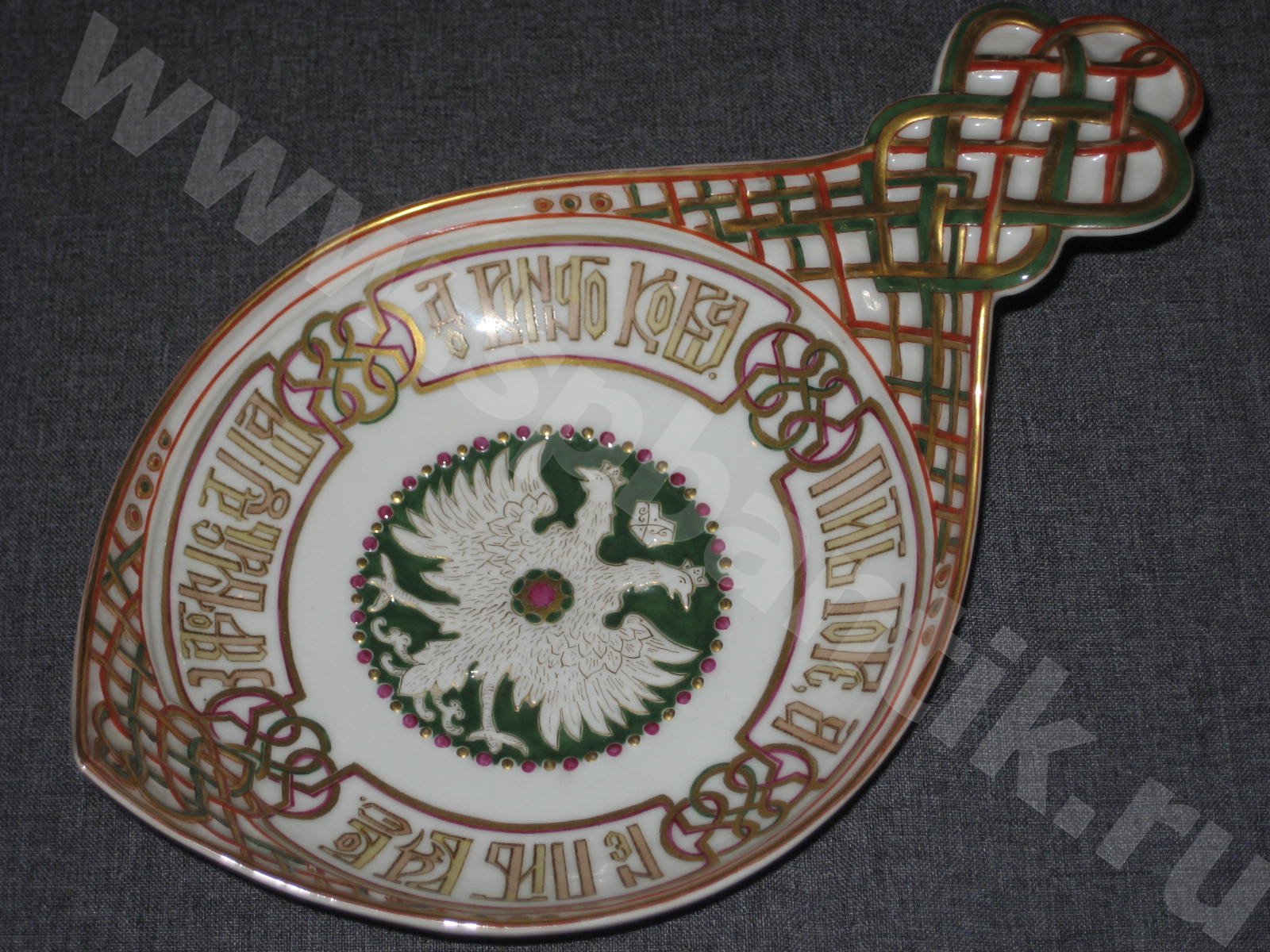 Ковш с гербом России и пословицей.