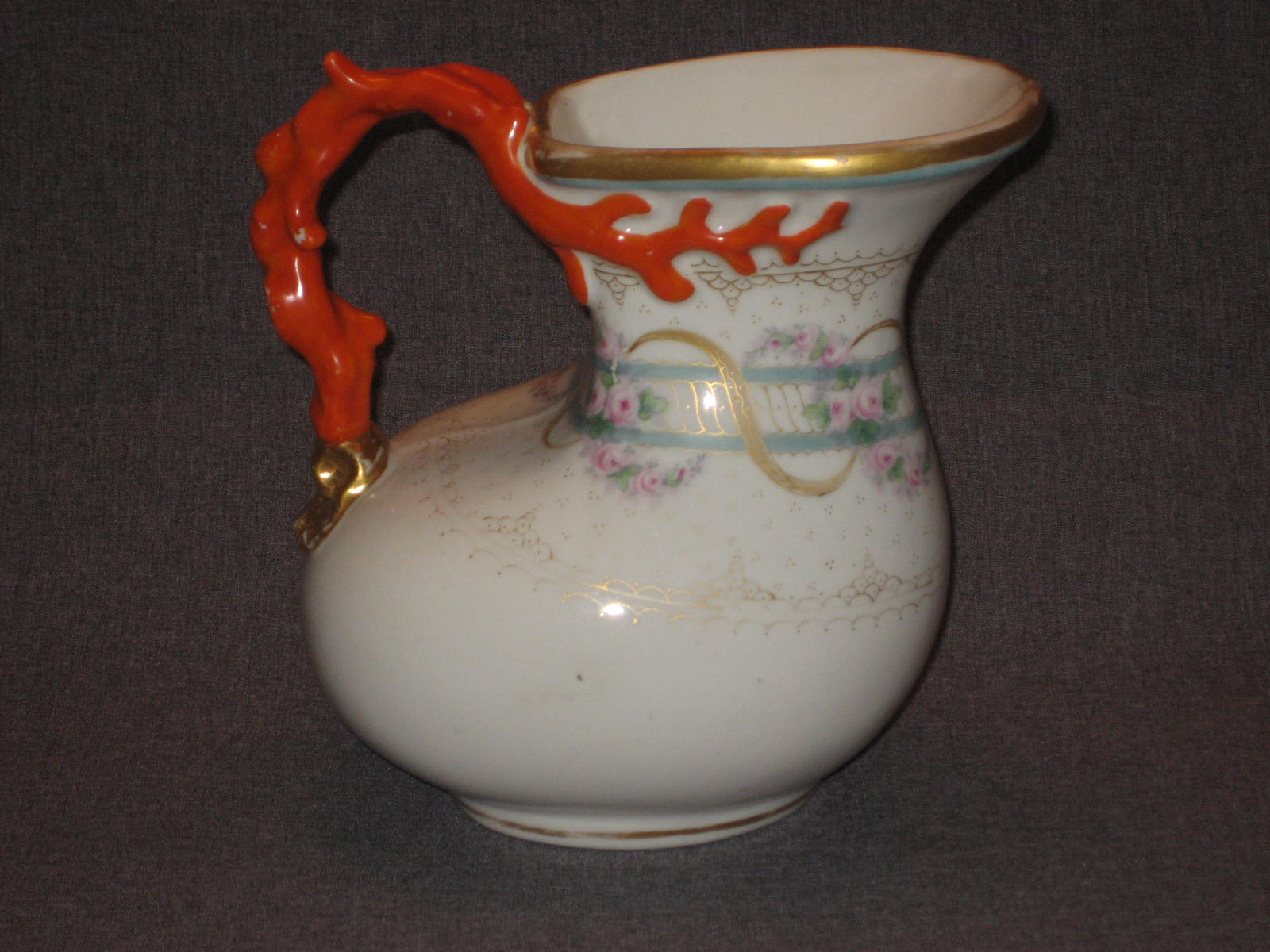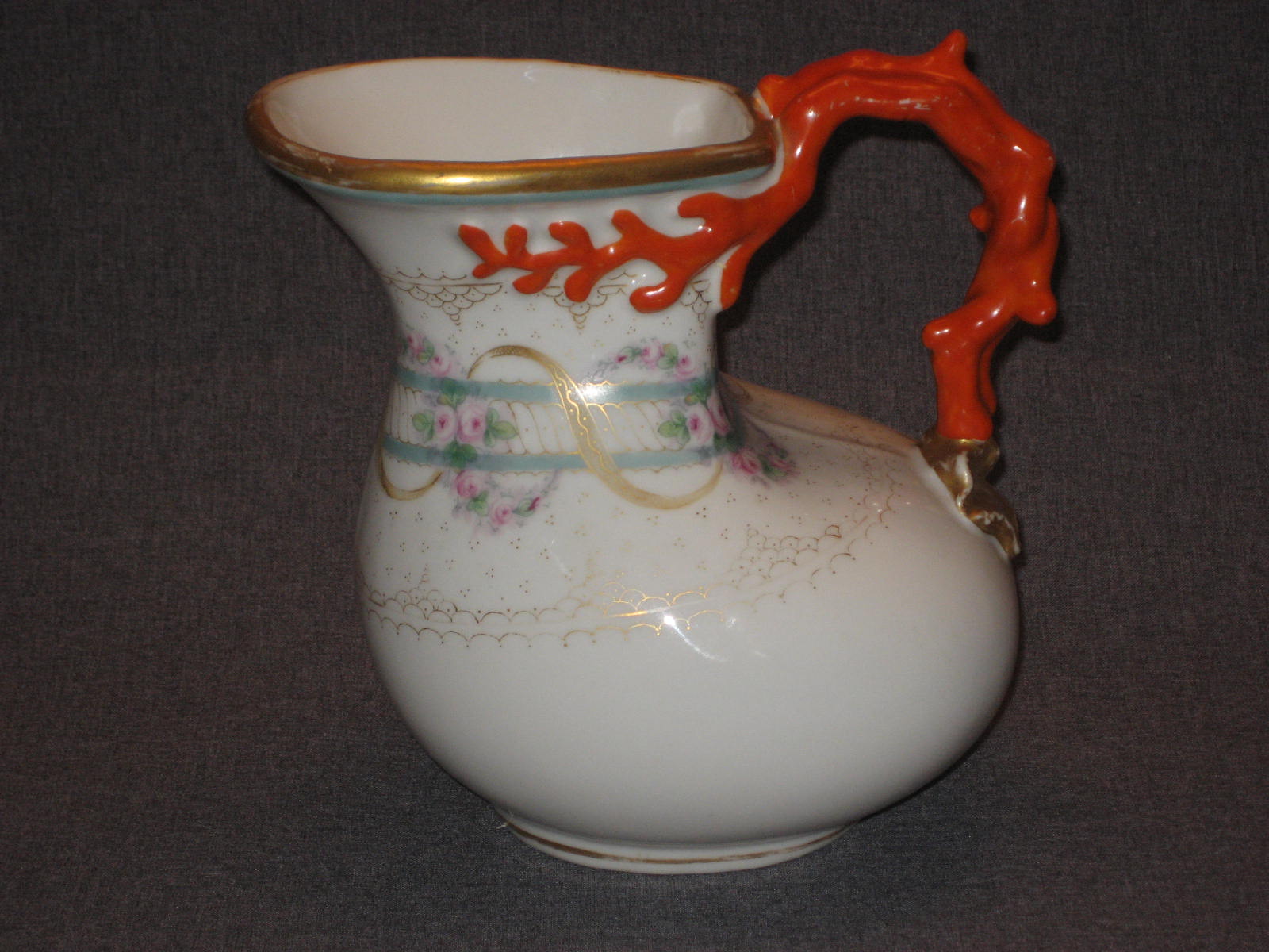 Кувшин в форме античного аска с ручкой в форме коралла. Прекрасное состояние. Дефектов нет. Небольшие потёртости позолоты. При необходимости вышлю Вам дополнительные фотографии.