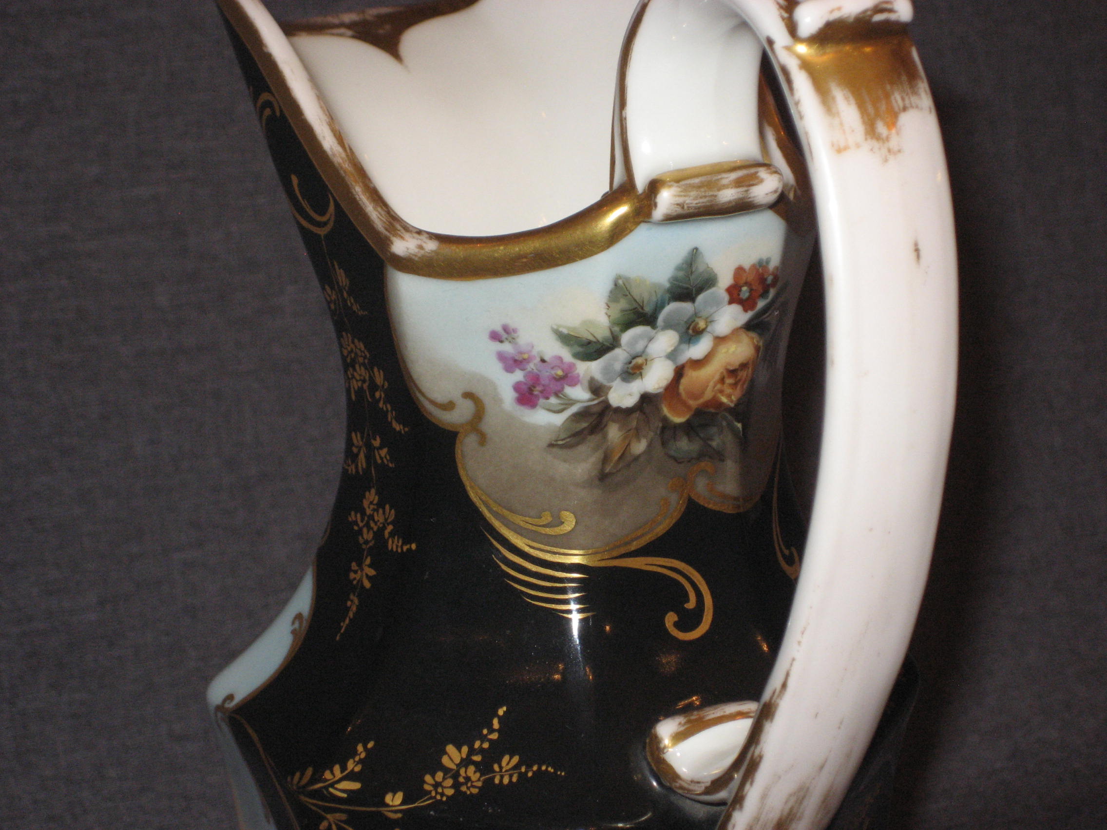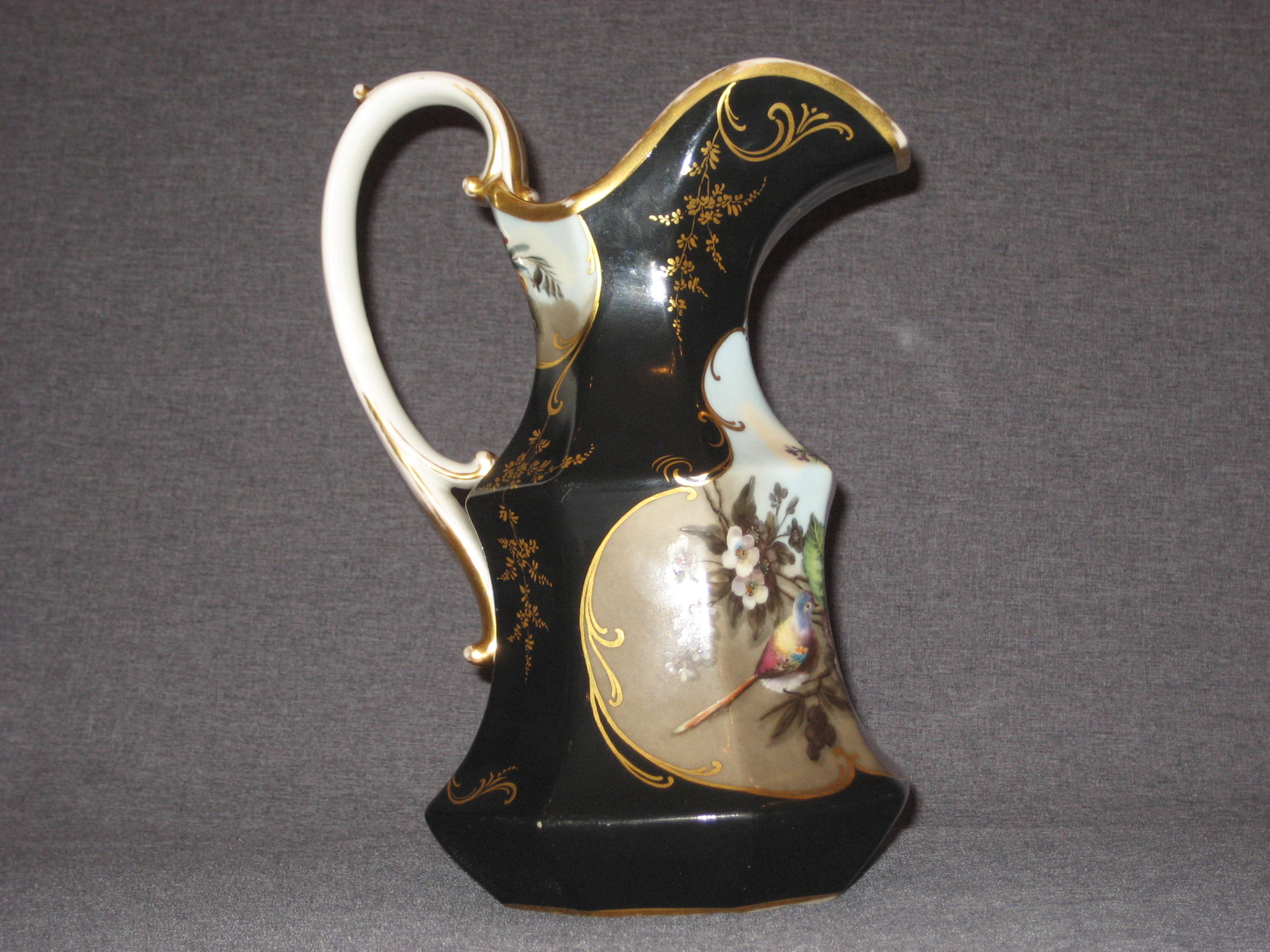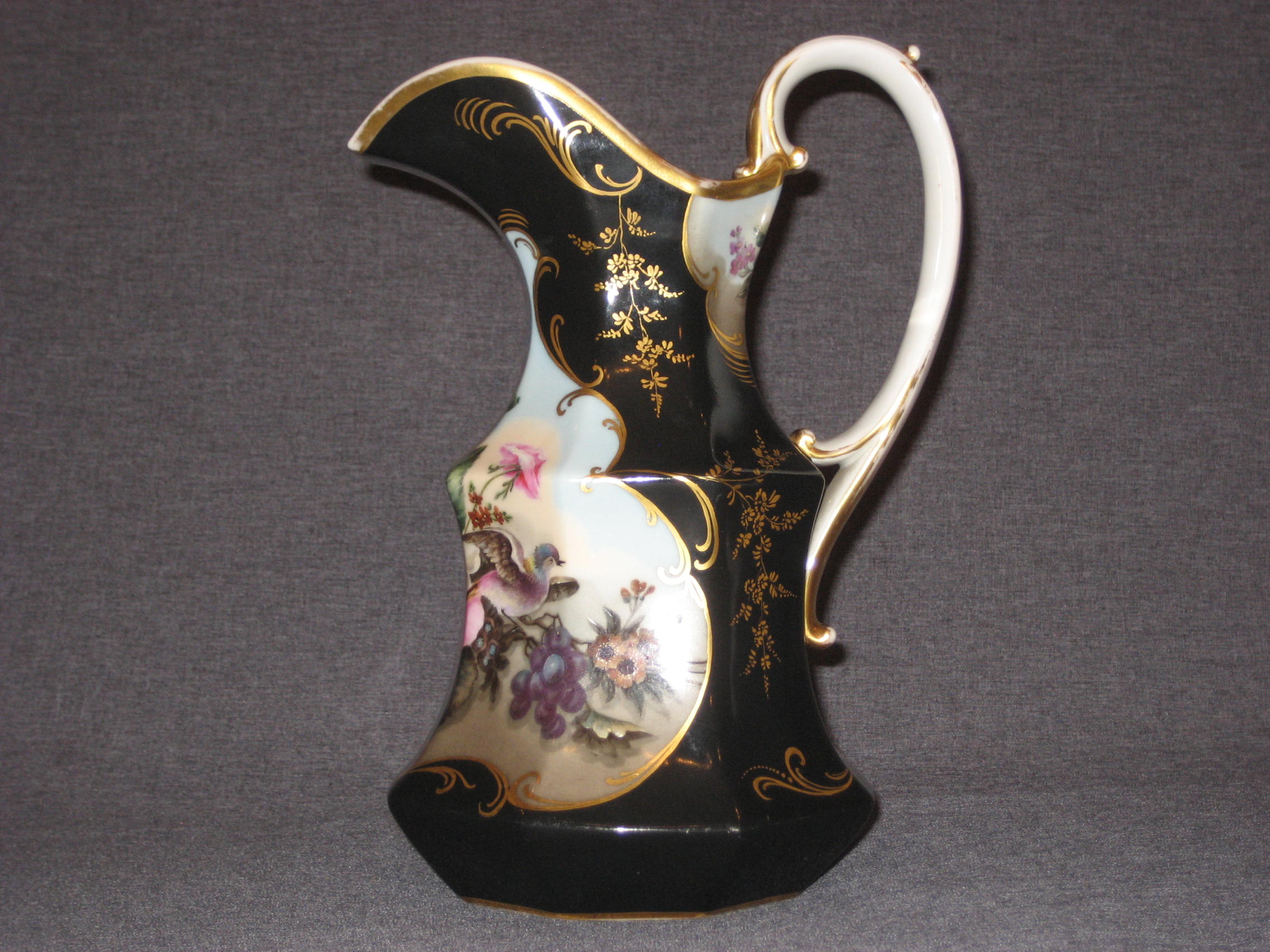 Шикарный! Чёрного крытья кувшин. Шикарная живопись. Дефектов нет. Только потёртости позолоты. По Вашему запросу вышлю Вам любые дополнительные фотографии.