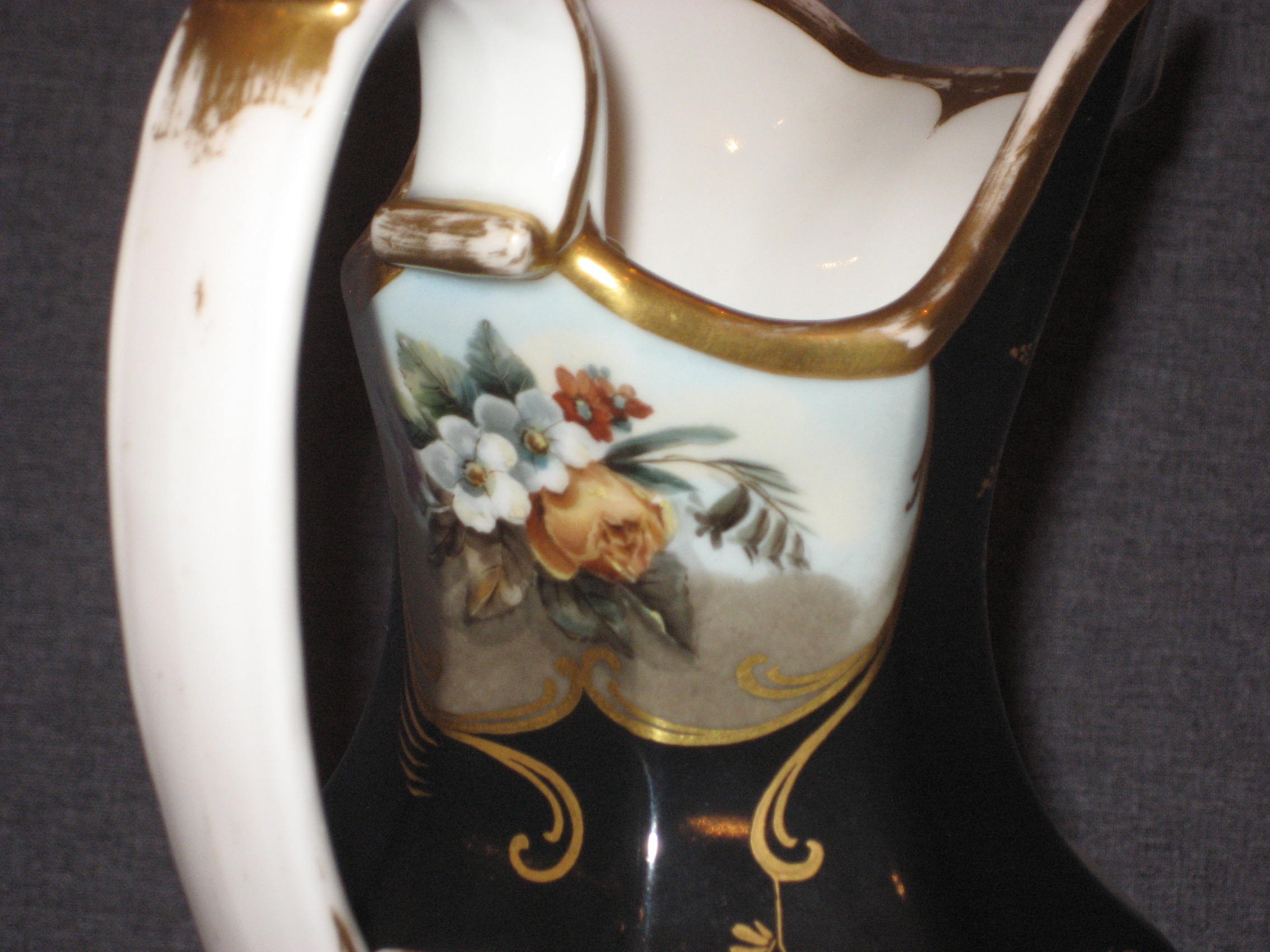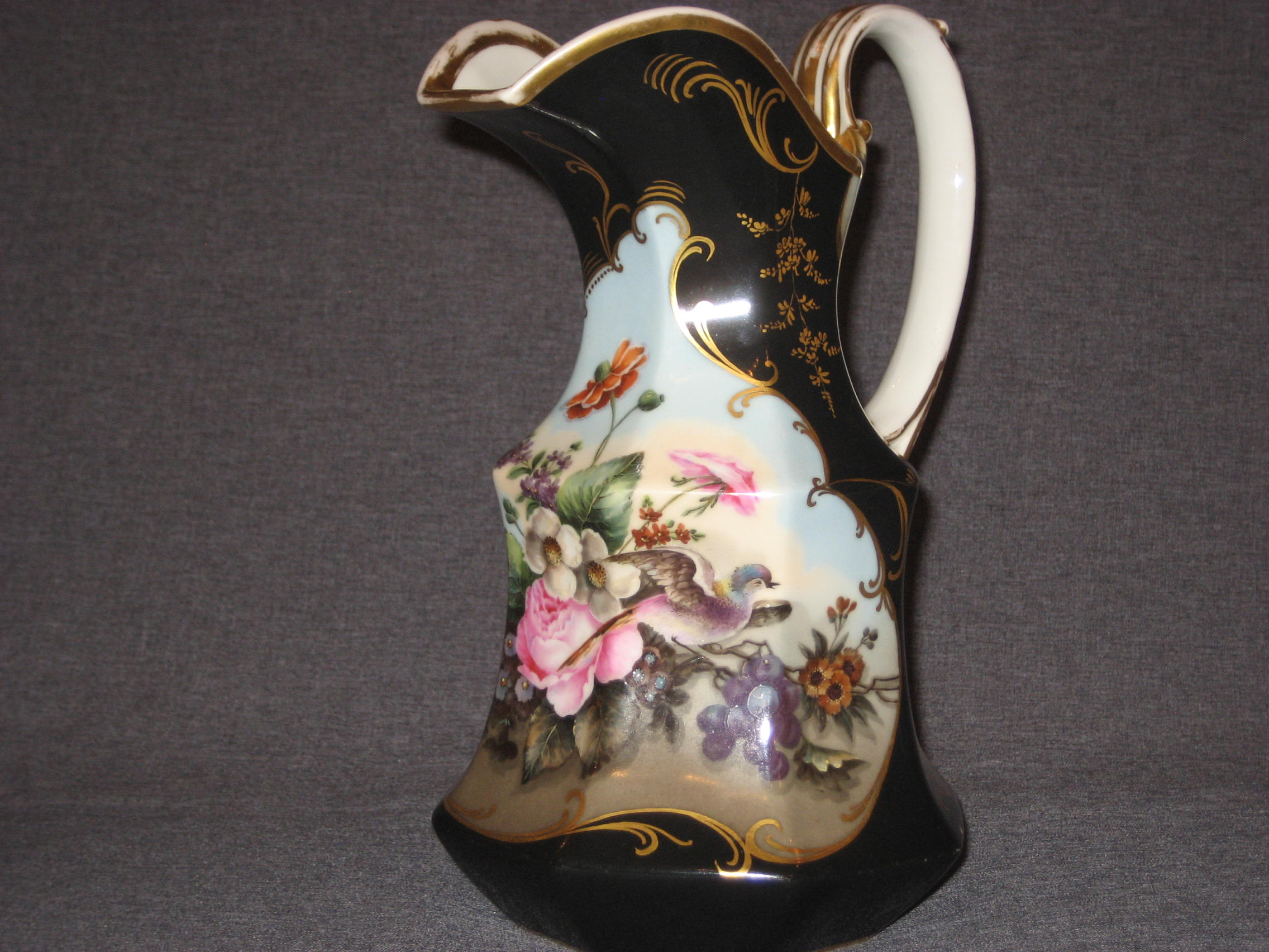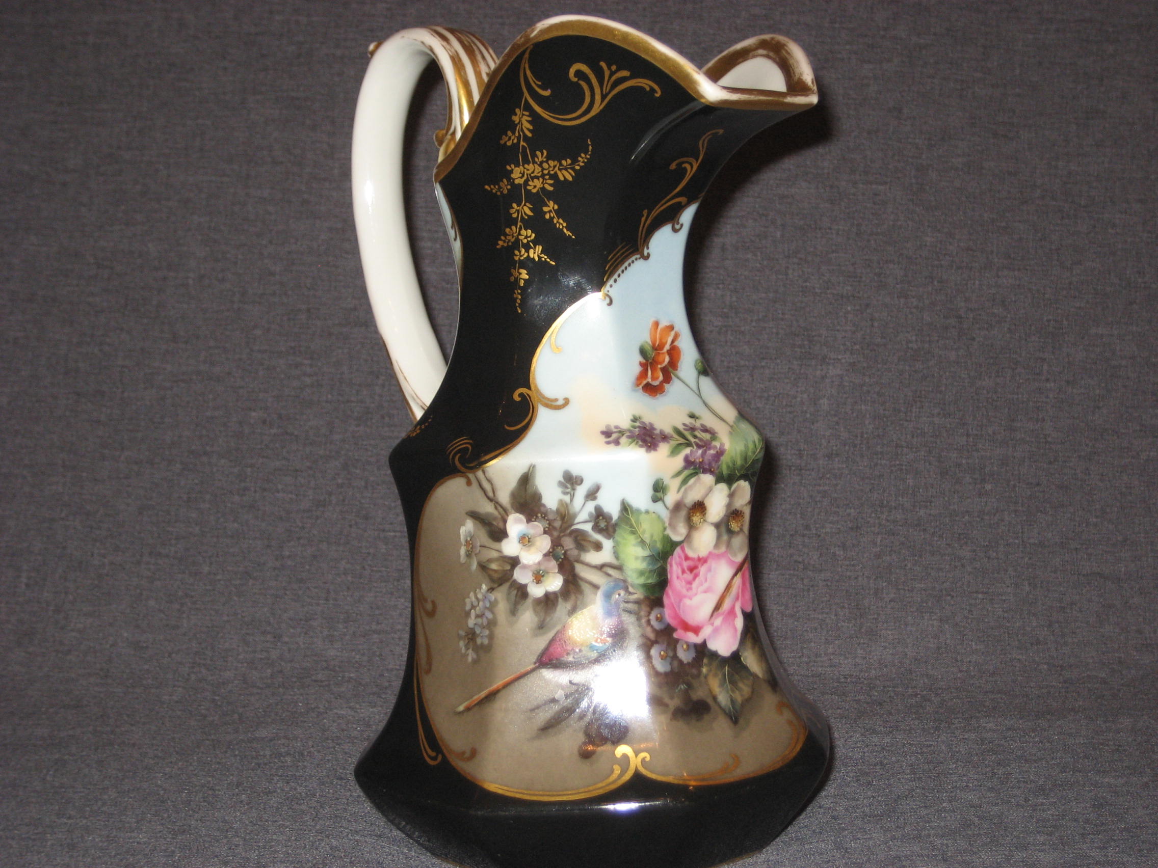 Шикарный! Чёрного крытья кувшин. Шикарная живопись. Дефектов нет. Только потёртости позолоты. По Вашему запросу вышлю Вам любые дополнительные фотографии.