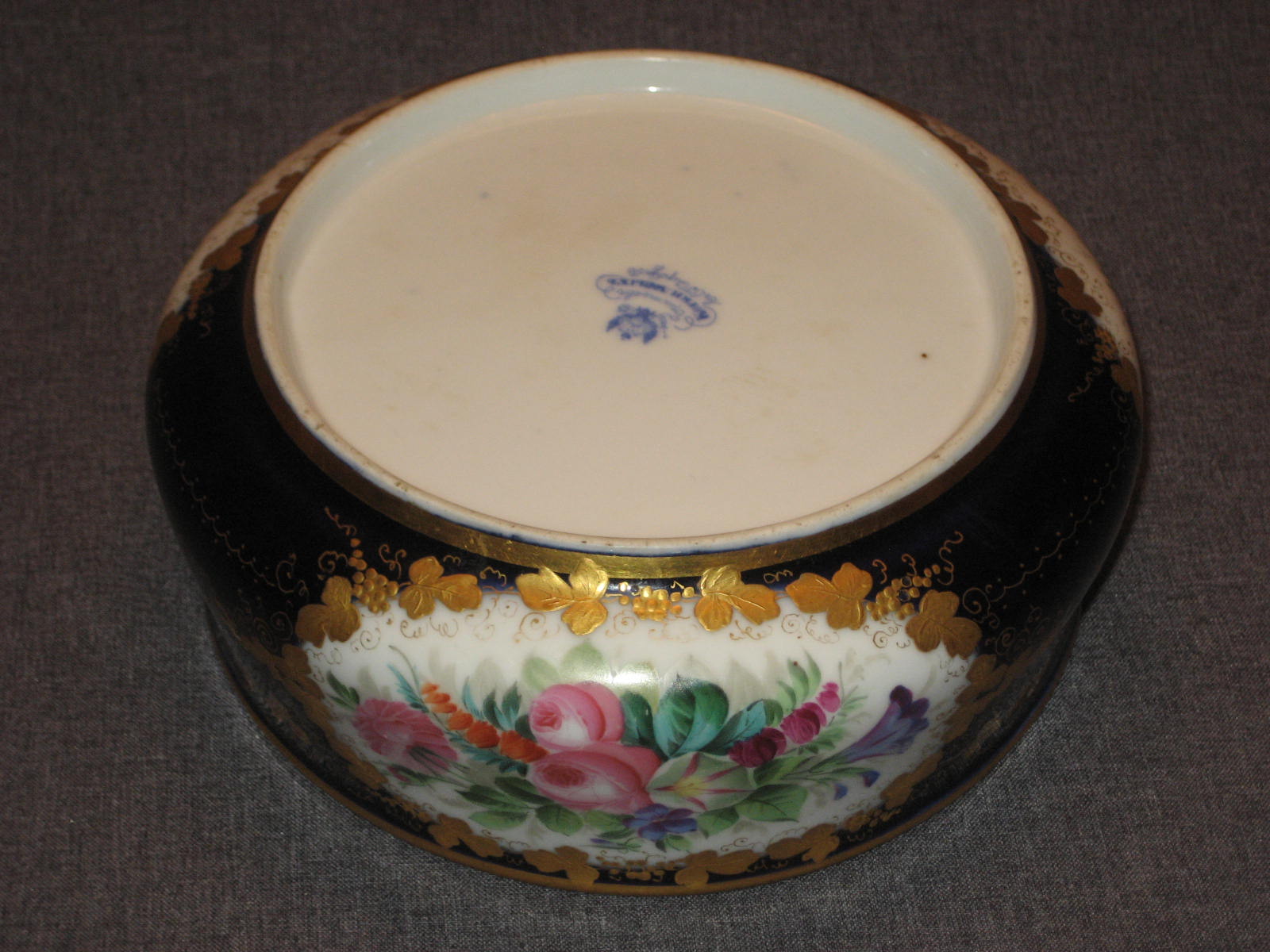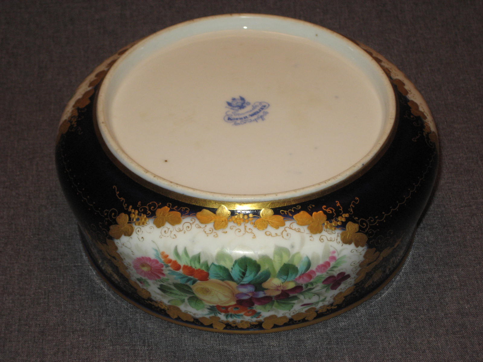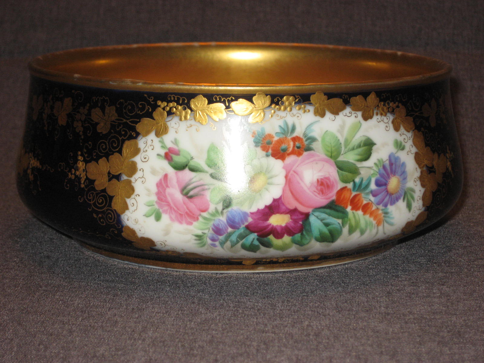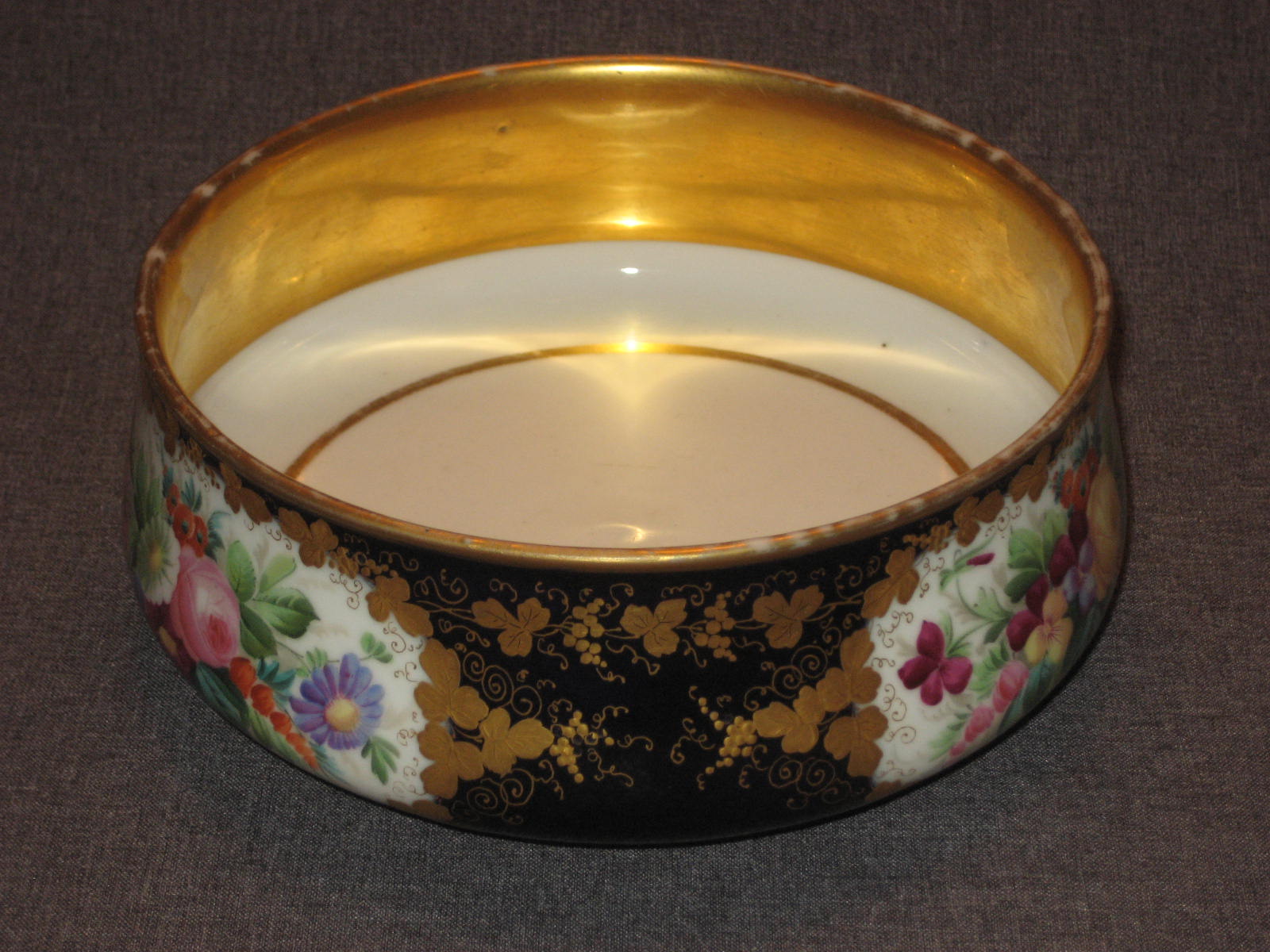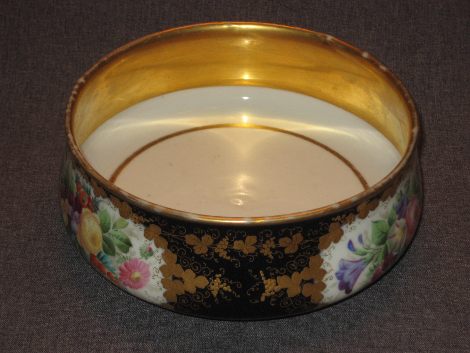 Полоскательница находится в отличном состоянии. Нет ни сколов, ни трещин, ни реставраций. Даже потёртости позолоты совсем мизерные только по верхнему краю. Роспись золотом рельефная/объёмная.