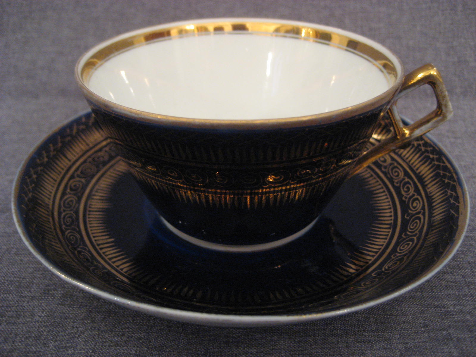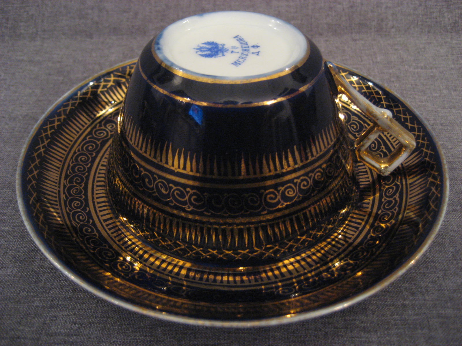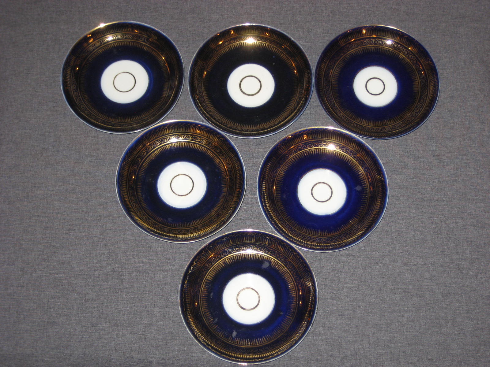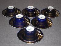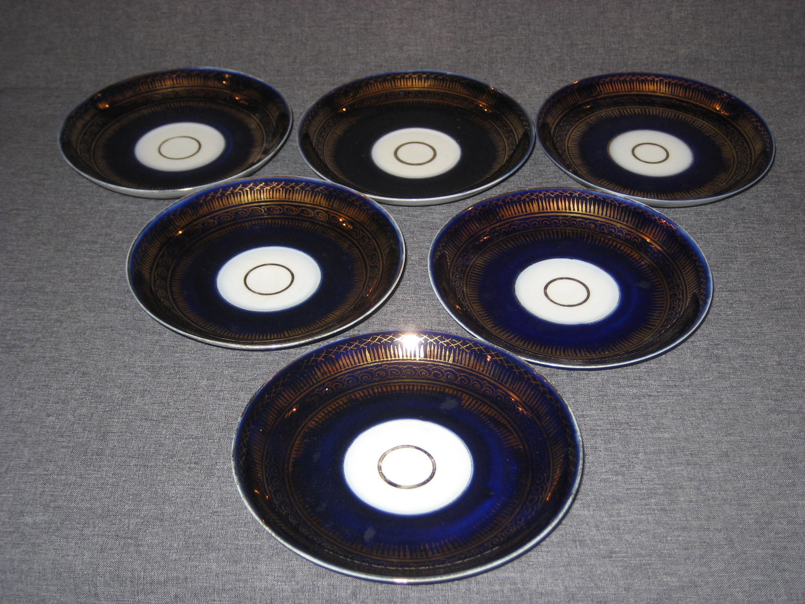 Комплект из шести чашек в Русском стиле с блюдцами для любителей кобальта с золотом! Дмитровская фабрика товарищества М.С. Кузнецова. Много кобальта и много позолоты. Состояние отличное. Дефектов нет никаких. Нет ни сколов, ни трещин, ни реставраций.Только потёртости позолоты на ручках чашек и небольшие потёртости на блюдцах.