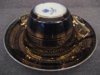 Возраст: 1884 - 1917 Годы. Страна: Российская Империя. Состояние: Отличное Техника: Подглазурное покрытье кобальтом Позолота Роспись золотом Материалы: Фарфор Торговые марки: Фарфоровые заводы Кузнецовых [ Российская империя ]