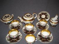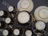 Диаметр блюдец 14,3 см. чашек 7,8 см. Ширина чайника 22 см. сахарницы 16 см . молочника 13 см . Высота блюдец 2,5 см . чашек 6,7 см.чайника 13 см. сахарницы 11,5 см. молочника 13 см. Цена: по запросу