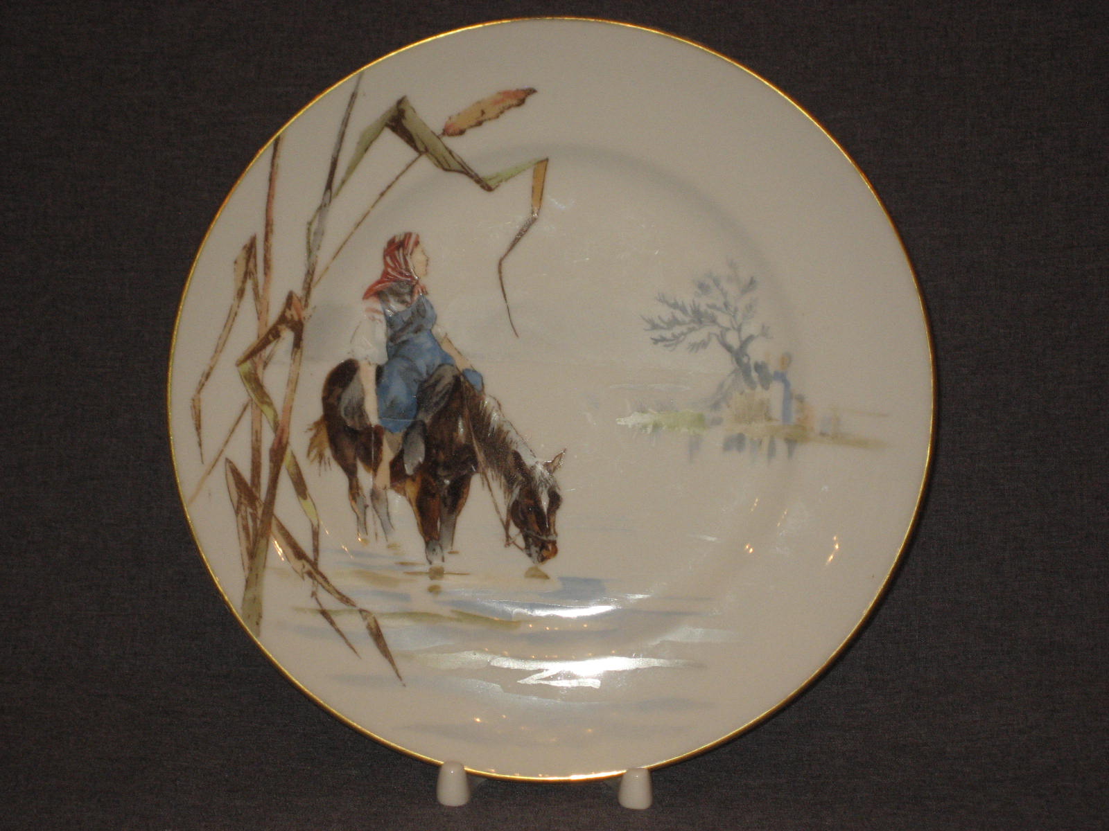 Тарелка с жанровой сценой из крестьянской жизни по рисунку Н.Н. Каразина. Состояние идеальное. Нет ни сколов, ни трещин, ни реставраций.