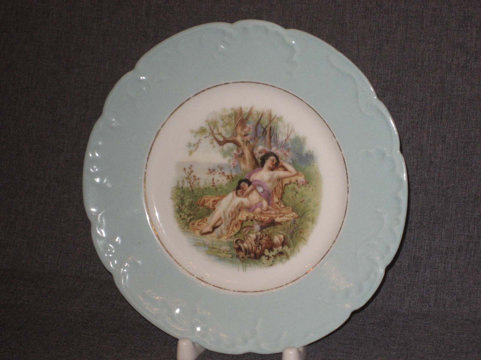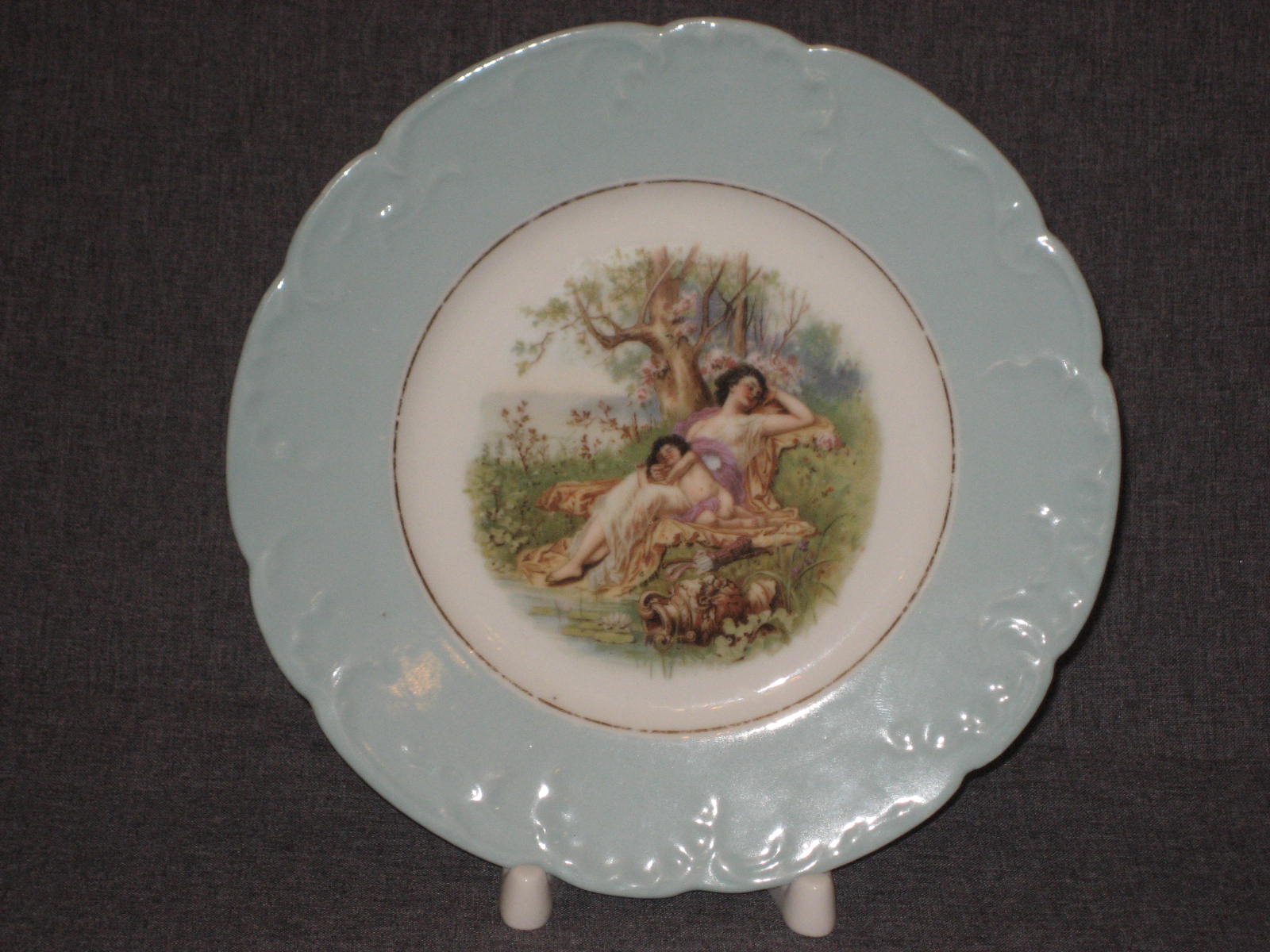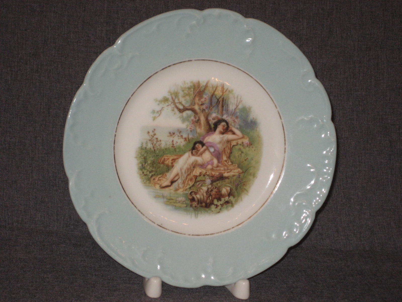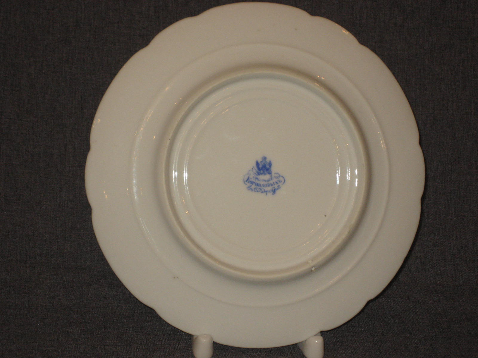 Тарелка находится в идеальном состоянии. Нет ни сколов, ни трещин, ни реставраций. Нет даже потёртостей позолоты. Борт тарелки имеет рельеф. Сзади сделано отверстие для подвешивания на стену.