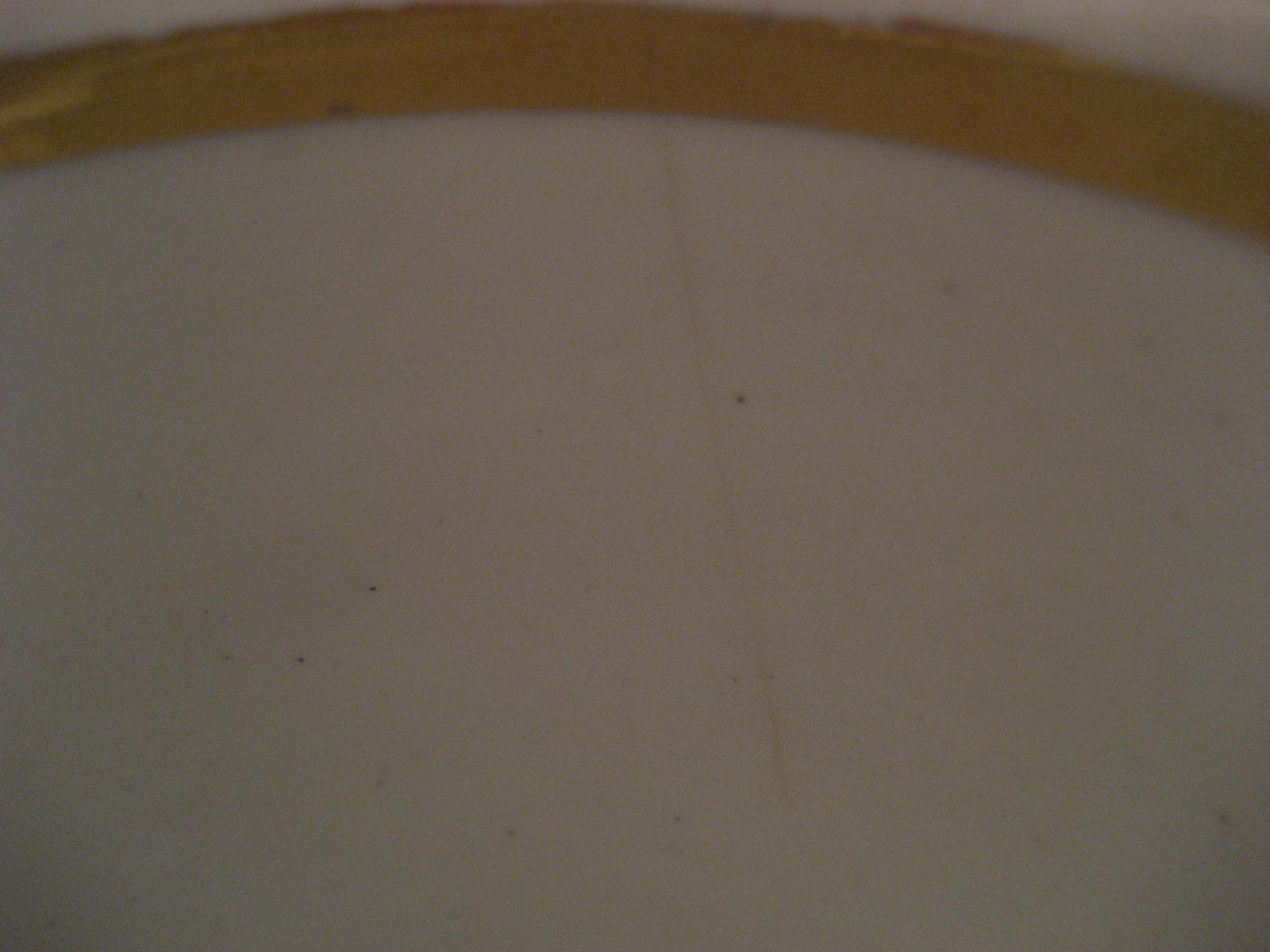Потёртости позолоты и волосяная трещинка на чашке(смотрите фото 8 и 9). Других дефектов нет.