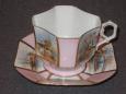 Чашка с блюдцем очень редкой формы, выполненная в технике "Рисовое зерно" или "Транслюсид", в отличном состоянии производства товарищества М. С. Кузнецова....