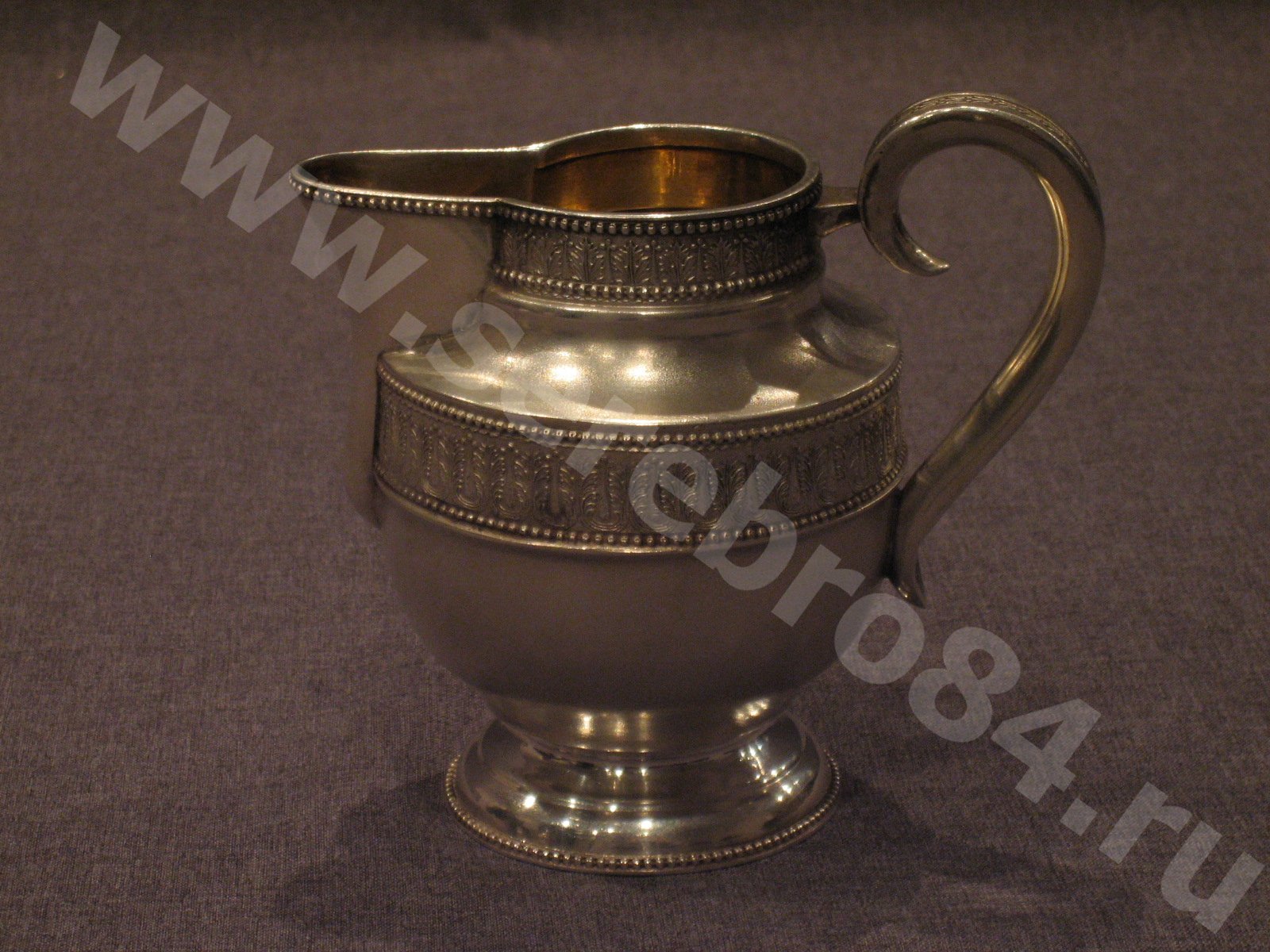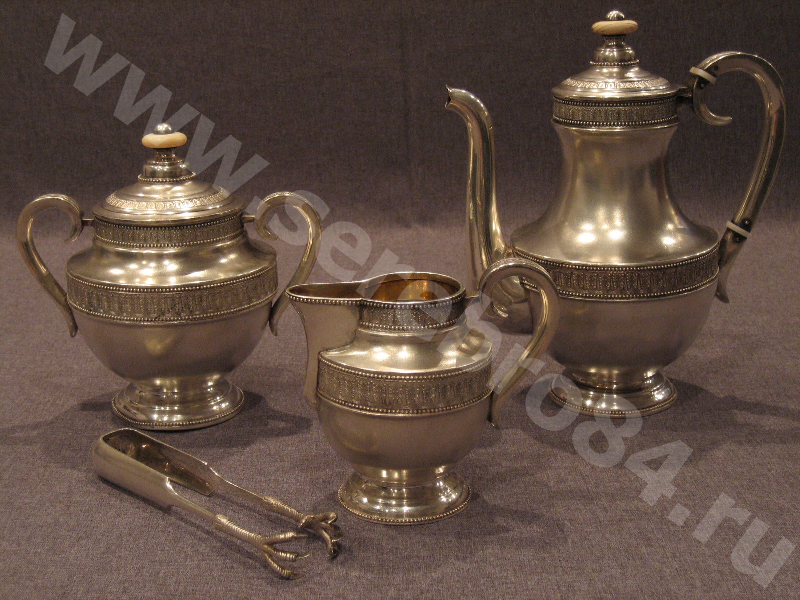 Высота: Кофейника 21 см.Сахарницы 16 см. Молочника 10 см.Ширина: Чайника 18 см. Сахарницы 17 см. Молочника 12 см.Длина щипчиков для сахара 15 см. Общий вес 1354 гр. Цена: по запросу