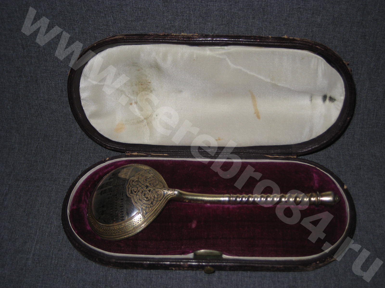 Возраст: 1869 год. Страна: Российская Империя. Состояние: Отличное Техника: Гравировка Литье Позолота Чернение Материалы: Серебро Торговые марки: Фирма М.Семеновой (Российская империя )[Посмотреть все предметы этого завода]