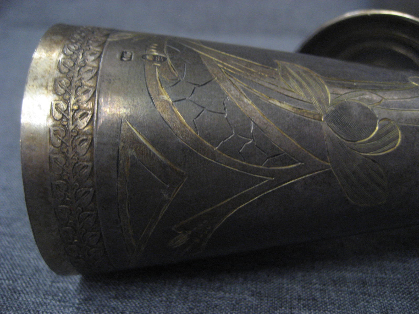 Парные бокалы, изготовленные мастером серебряных дел Иваном Евгеньевичем Бутузовым.