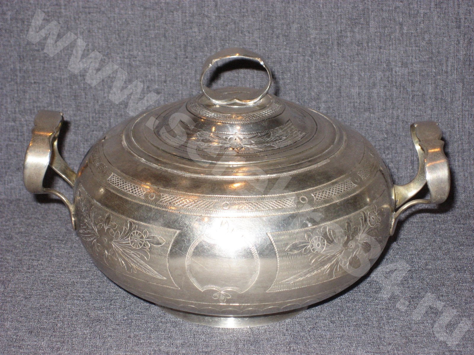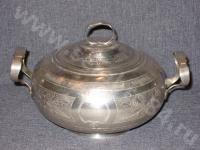 Возраст: 1873 год. Страна: Россия. Москва Состояние: Хорошее Техника: Гравировка Литье Позолота Материалы: Серебро Высота с крышкой 10 см. Ширина с ручками 16 см. Вес 316 гр. Цена: по запросу
