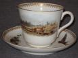 Большая чашка с блюдцем с жанровой сценой по рисунку Каразина.