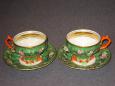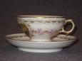 Чайная пара с крышкой в форме яйца с надписью "Х.В". Сколов, трещин, реставраций нет. Деколь с подрисовкой. Ни блюдце, ни чашка не маркированы. С очень...